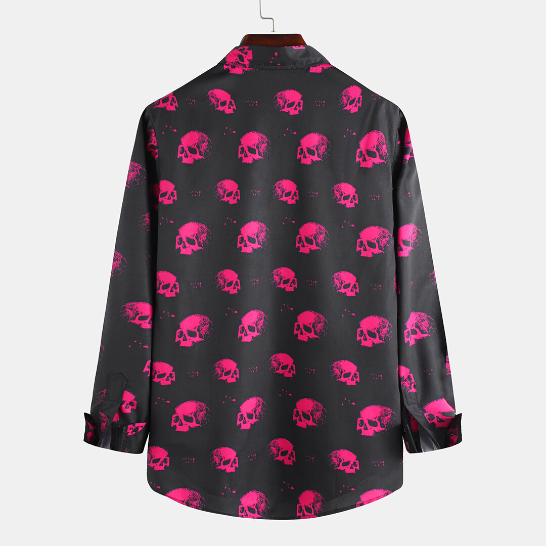 Scary Skeleton Printed Casual Long Sleeve Shirts – 2XL As Picture