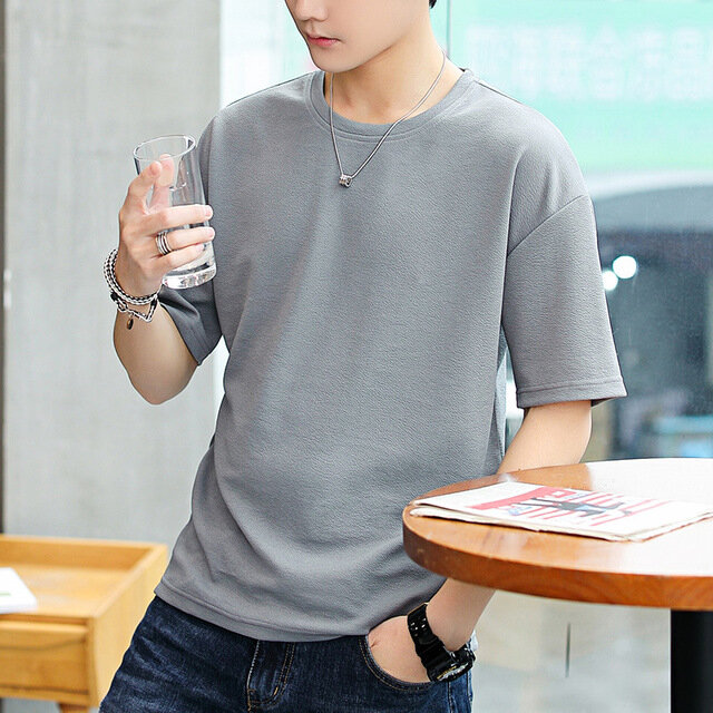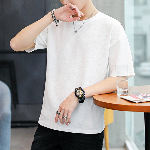 Season Men’s Short-sleeved T-shirt Trend Loose Short-sleeved Solid Color T-shirt Fitted With Clothes T-shirt Male – XL Black