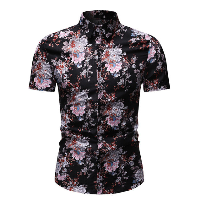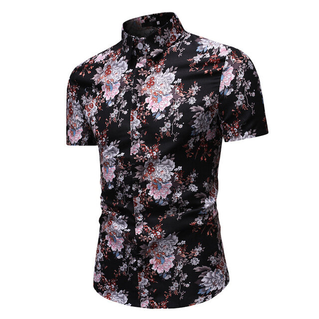 Season New Fashion Printing Casual Men’s Short-sleeved Flower Shirt Hz28 – 2XL Photo Color