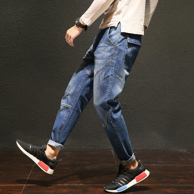 Season New Harem Pants Men’s Pants Youth Men’s Jeans Stitching Loose Large Size Stretch Pants Tide – 31 Blue 5505