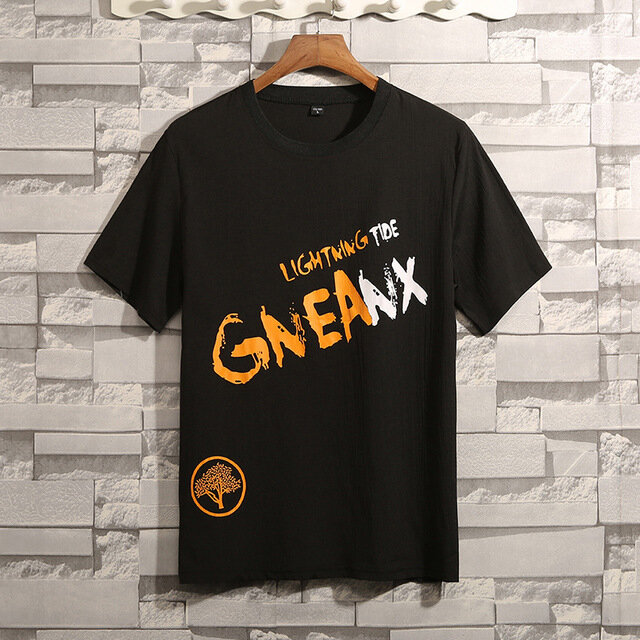Season New Men’s Short-sleeved T-shirt Trend Loose Fit Half-sleeved Men’s Cotton Clothes Men – S Black