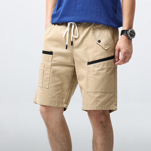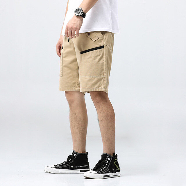 Season New Tooling Shorts Men’s Solid Color Sports Casual Pants Trend Loose Beach Pants Five Pants Men – M Army Green