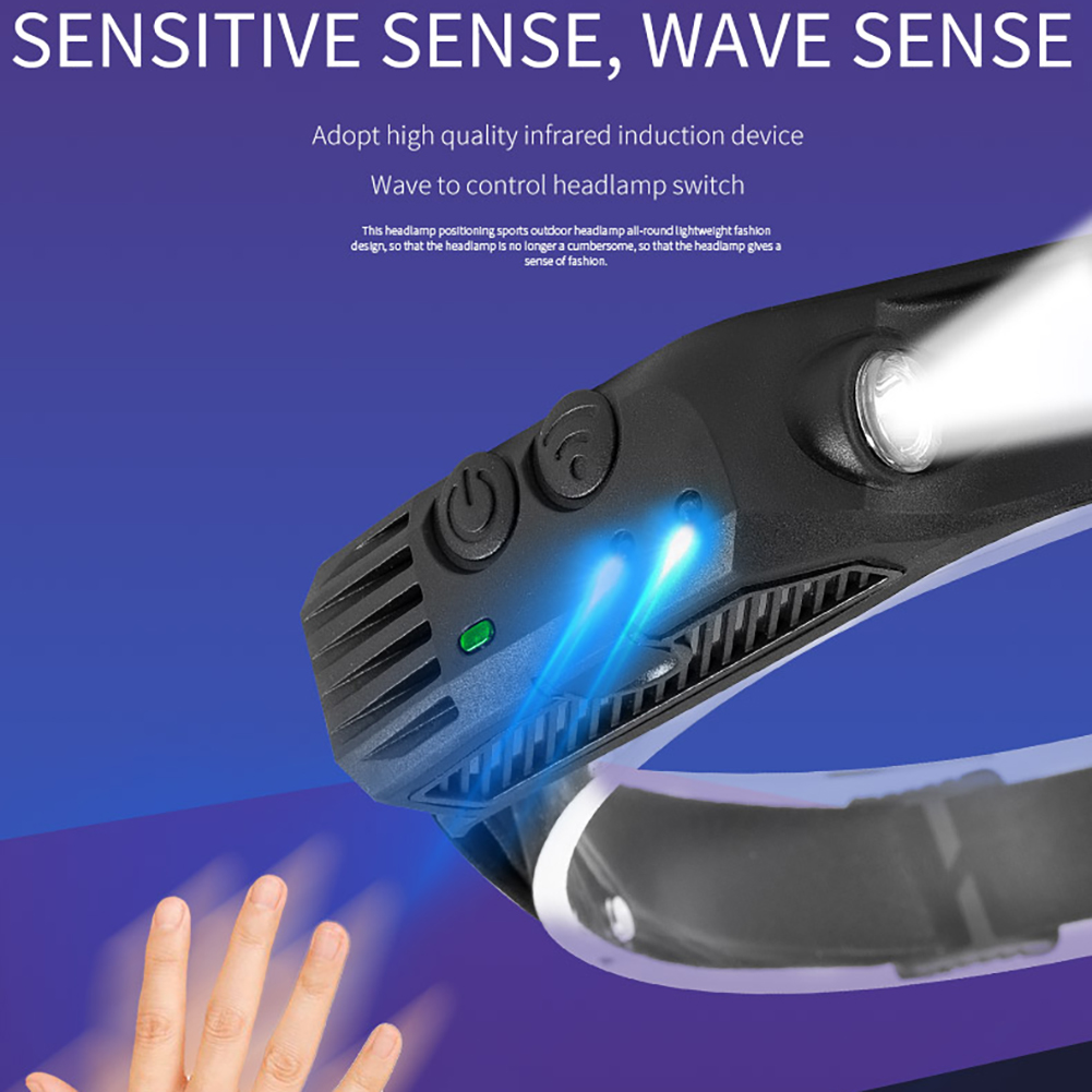 Sensor Cob Led Headlamp Outdoor Usb Charging Flashlight Torch Head Band Lamp Riding Multi-function White Light