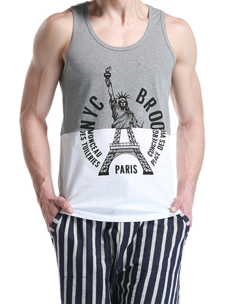 SEOBEAN New York Paris Printed Men’s Vest Cotton Summer Leisure Fitness Jogging Sport Tops – XL #01