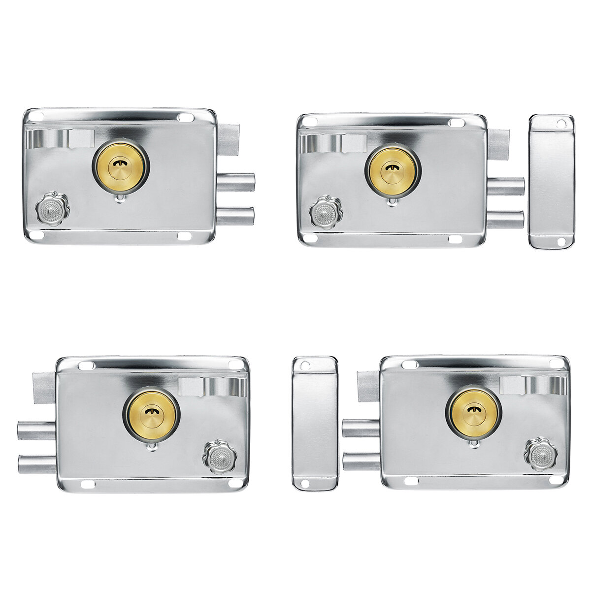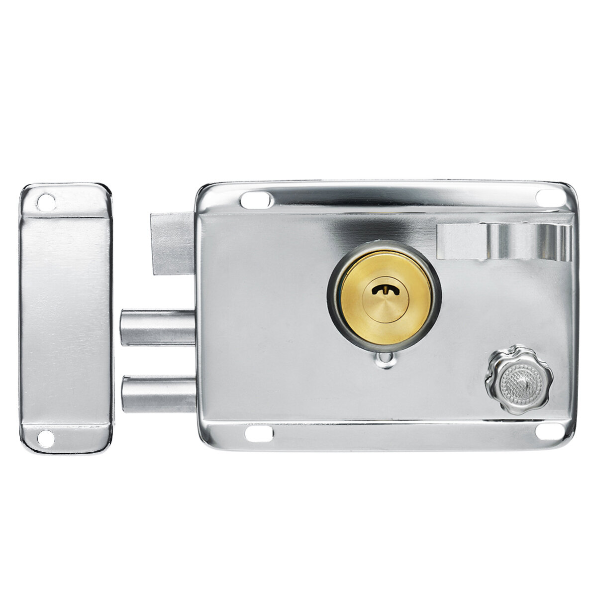 . Caracteristiques : Convient aux menages, betiments commerciaux, zones residentielles, etc. Serrure de porte exterieure Securite Serrure antivol Serrure transversale. Double cylindre de serrure en zinc pour la securite e domicile. Fait de materiel en fer, qui offre une resistance e la rouille et une duree de vie prolongee. 4 types e selectionner: main gauche et main droite, avec pene dormant et sans pene dormant. Contient tout ce dont vous avez besoin pour adapter une porte individuelle, facile e installer. Specification : Materiel: fer Couleur de surface: Nickel brosse Distance centrale applicable: 60mm Distance de trou de montage (diametre): 30mm epaisseur de porte appropriee: 35-50mm Taille: 120x85mm Poids: 550g Re : La position de la languette de blocage peut etre differente de celle de leimage, mais elle est deje utilisable, la languette de blocage peut etre reglee comme indique sur leimage. Le forfait comprend: 1 x serrure de porte 5 x Key 1 x montage Details photos: