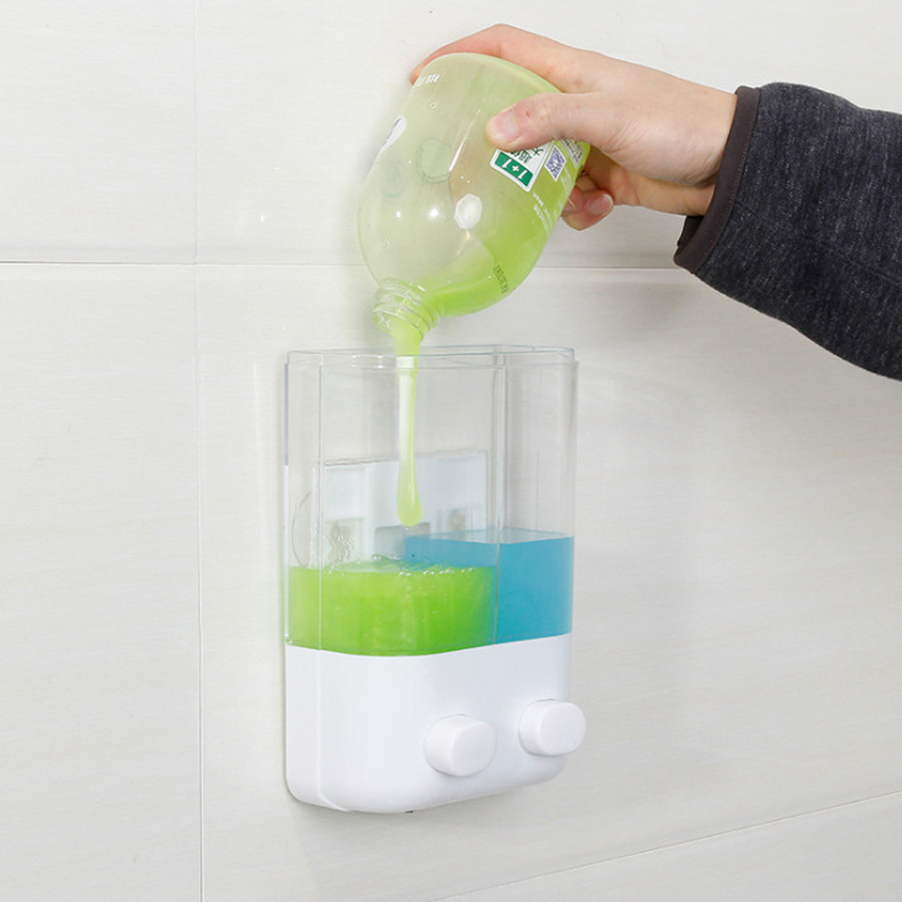 Shampoo Soap Dispenser Shower Washroom Double Gel Liquid Wall Mounted Pump Body Lotion 1000ml Hand Wash white quantity