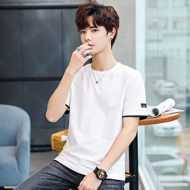 Short-sleeved T-shirt Men’s Season New Men’s Simple Versatile Comfortable Breathable Short ? Trend Round Neck Solid Color T-shirt – XXL Black