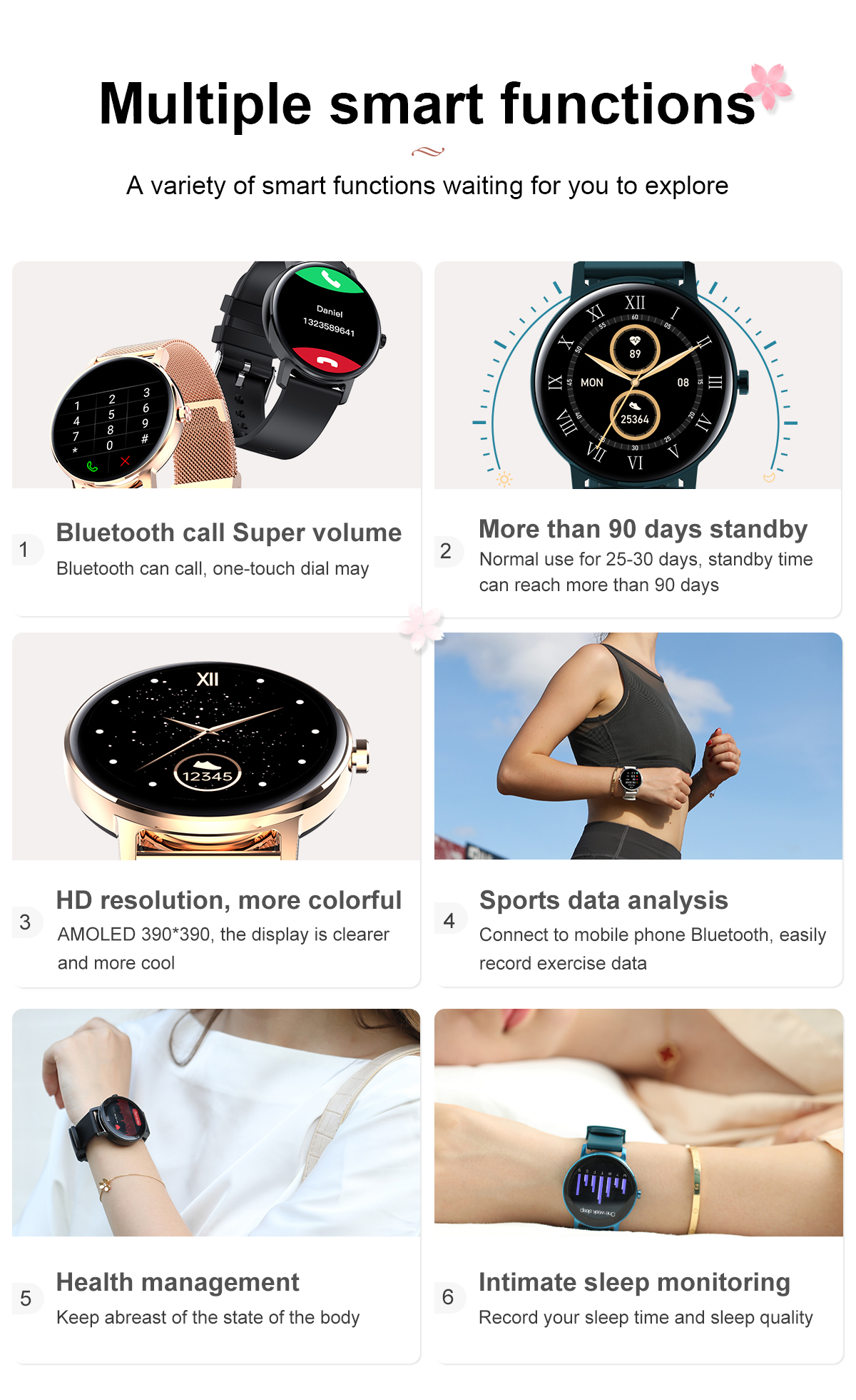 Fashion call watch:Elegant charm between the bloom from the wrist.Get rid of the load free your hands:The strap is made of silicone material , giving consideration to softness and texture, without any restraint.Watch phone book,One-touch dialing:Increase the phone book on the watch, one-touch dialing,fast and convenient.Scientific sleep management,Get a good nights sleep every day.
