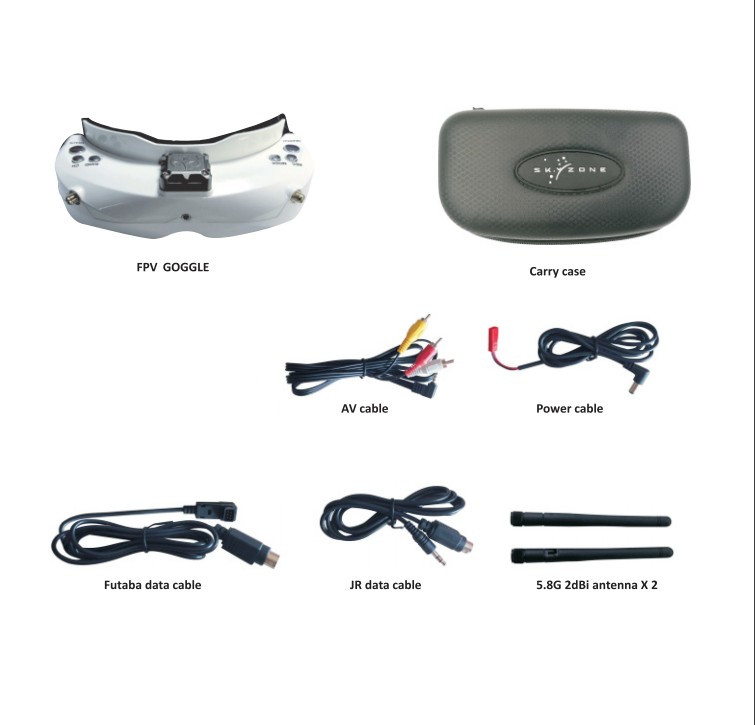 Support 3D/2D RF, HDMI IN,AV IN ,recording and play back mode. Built-in 640*480 VGA front camera,easy observe surroundings without taking off the glasses. Built-in fan for defogging and dissipate the heat. With Metal Fan Case. Spectrum Analyzer, player can check signal strength in the field. Support 2S~6S battery, more convenient in the field.