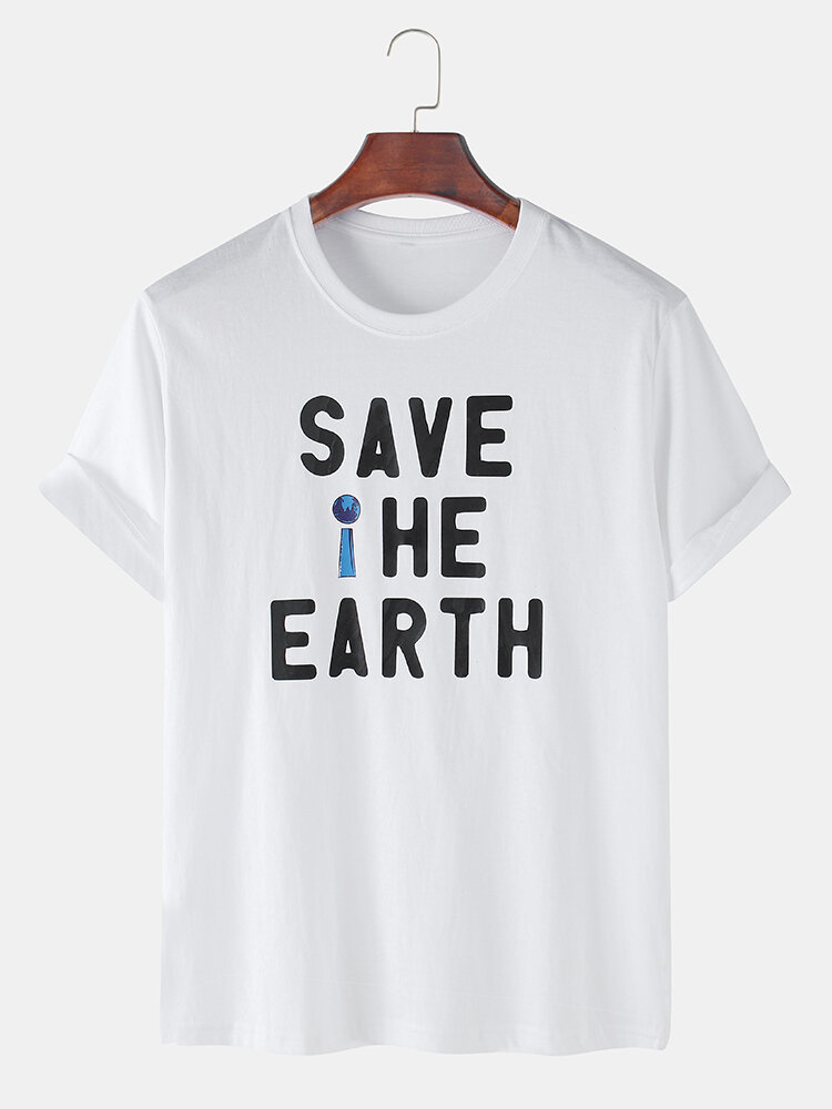 Slogan Print Casual Cotton Short Sleeve T-Shirts – White S