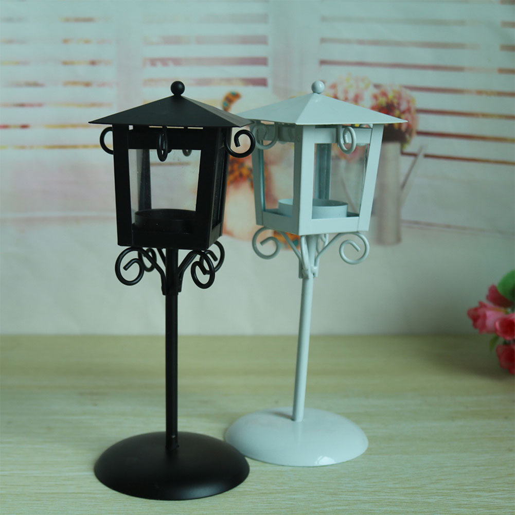 Small Street Lamp Modelling Candle Holder European Simple Creative Wedding Candlestick black
