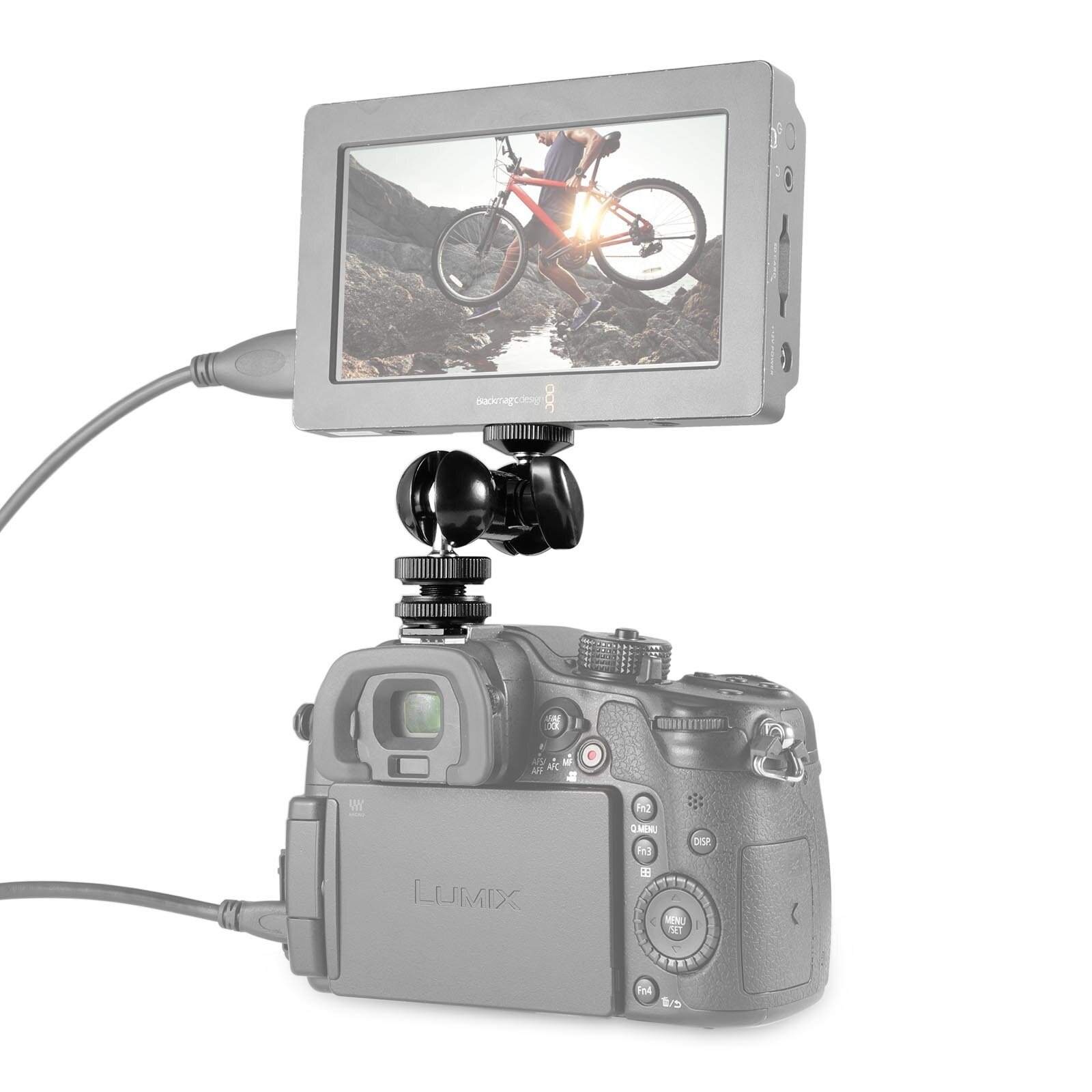 Il peut etre monte directement sur le support de chaussure d'un DSLR ou d'un camescope et permet la fixation d'une gamme complete d'accessoires video. Utilisee pour fixer des moniteurs ou de petites lumieres e votre appareil photo lors de la prise de vue video, cette rotule possede un seul bouton de verrouillage pour un fonctionnement rapide et ser.