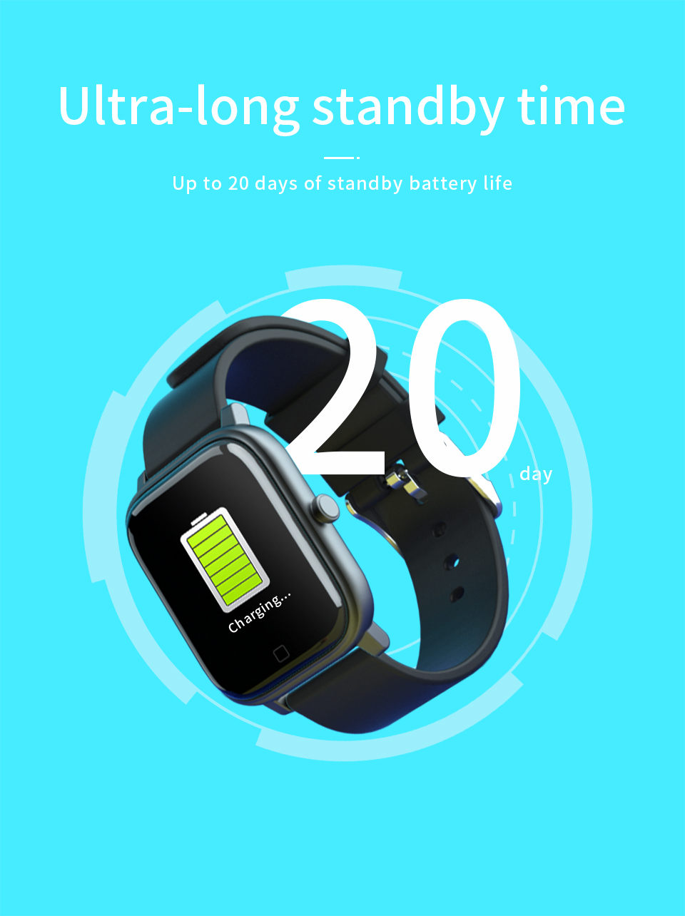 Super long standby time: up to 20 days of standby battery lifeColor display is clear and bright: radiating 2.5d surface mirror. Touch without interference, more sensitive operationSports management: record steps and calorie count. Forget the phone to enjoy a different kind of journeySedentary reminder: set up a sedentary reminder that will remind you to urge you to do some exercise and relax your body