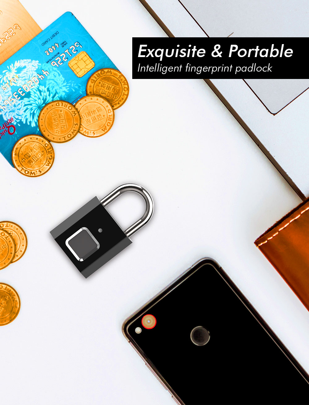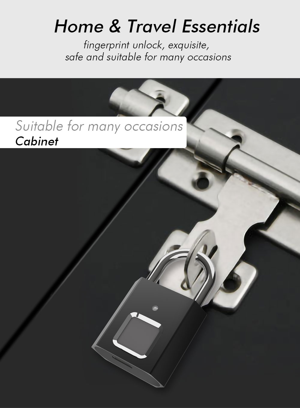 Smart Door Padlocks Rechargeable Lock Fingerprint Keyless Quick Unlock black