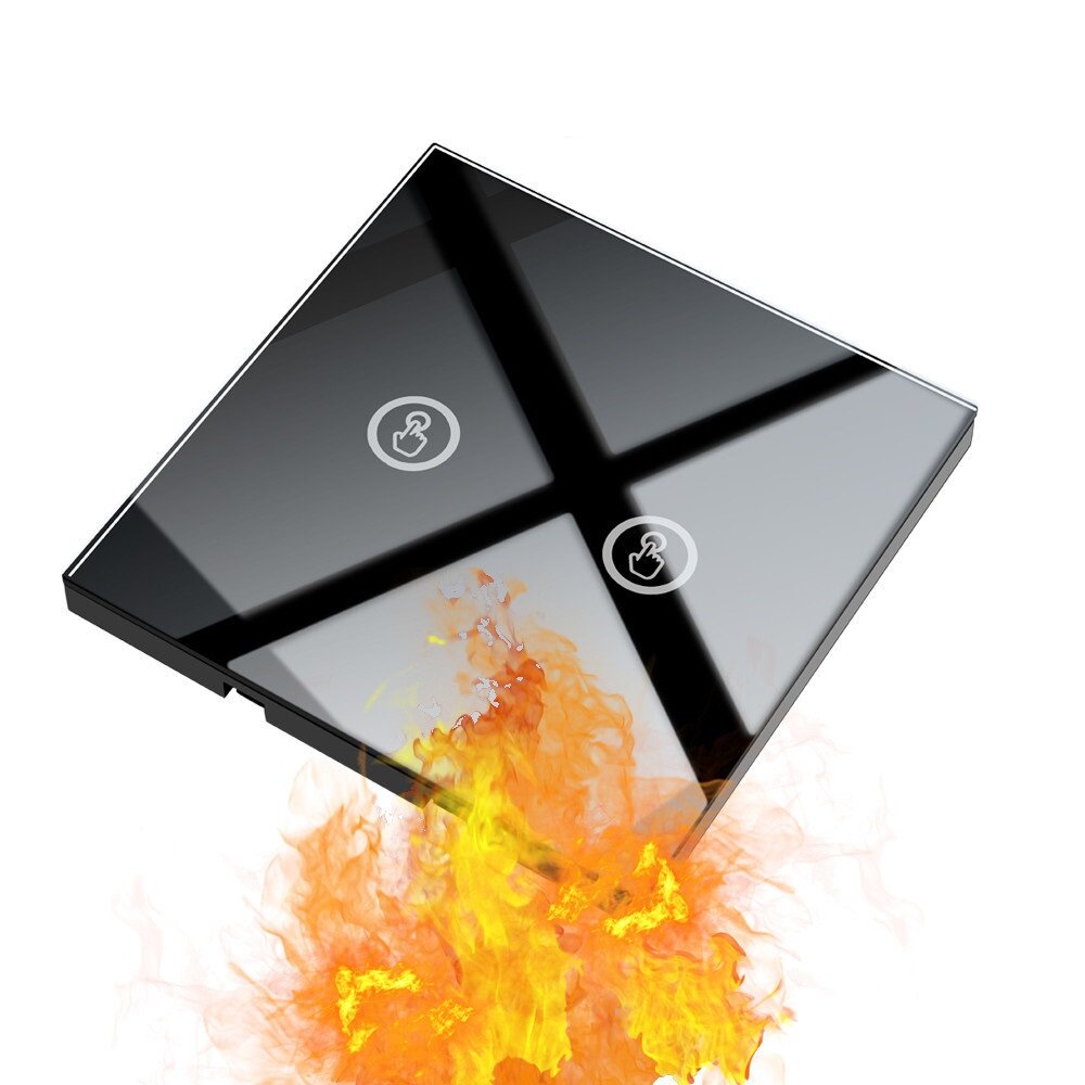 SMATRUL Blanc 2 Gang Touch Interrupteur Mural Marche / Arret Lumiere LED Lampe ecran En Verre Cristal Panneau