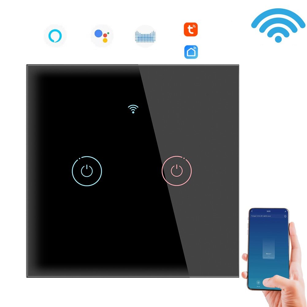 SMATRUL noir WIFI relais tactile sans fil lumiere intelligente interrupteur mural Graffiti commande vocale intelligente avec Alexa norme europeenne – deux boutons