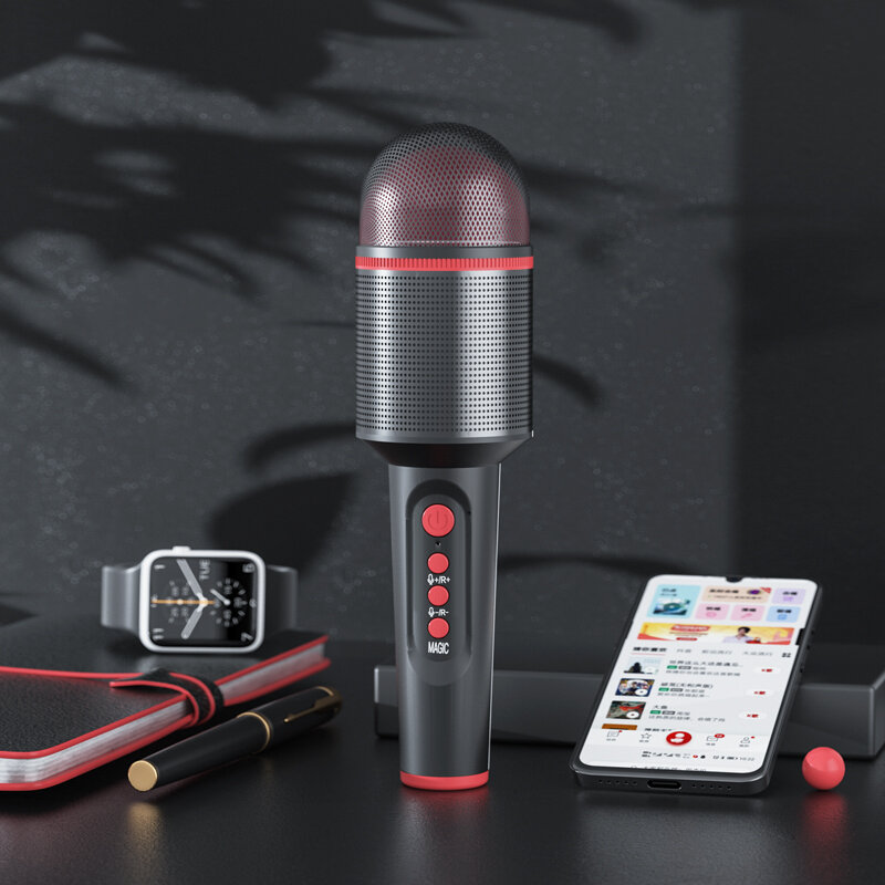 Le microphone offre un son live KTV plus epoustouflant, un rythme musical plus clair avec une reverberation d'echo. Prend en charge le son magique, les voix masculines, feminines et enfantines sont commutables.