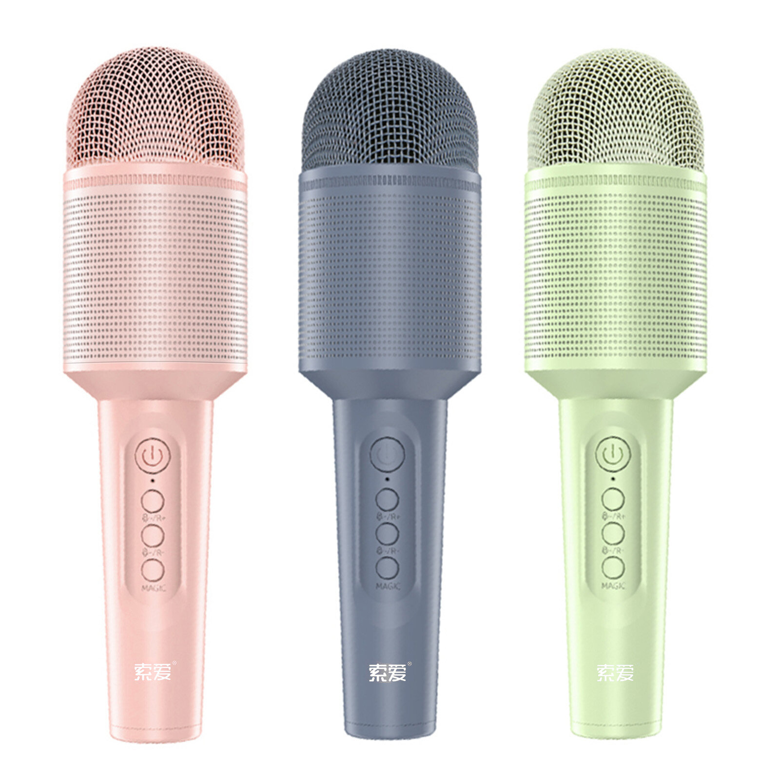Soaiy MC8 microphone karaoke bluetooth professionnel microphone e main sans fil carte son integree pour le chant de fete – Rose