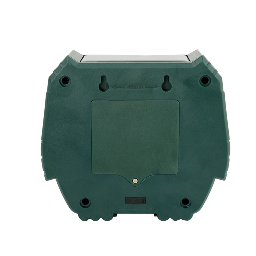 Right in front of 110 ° fan-shaped area, 6 to 8 meters range (see product manuals), depending on the size of the animal. (the larger the animal, the farther the sensing distance) It has LED white light blasting and flashing function to instantly alarm the animals. At the same time, ultrasonic drives for different animals will emit different frequency sound waves of 15-65KHZ. Solar charging display. The charging voltage of the solar panel is 5.5v and the current is 20-25ma.