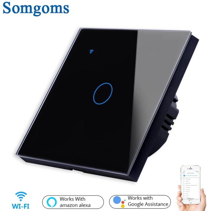 Somgoms SM-11W-EU Tuya WiFi sans fil 1Gang 2 voies interrupteur tactile mural intelligent AC 100V / 220V interrupteur mural sans fil EU / UK Standard Smart Home – Noir
