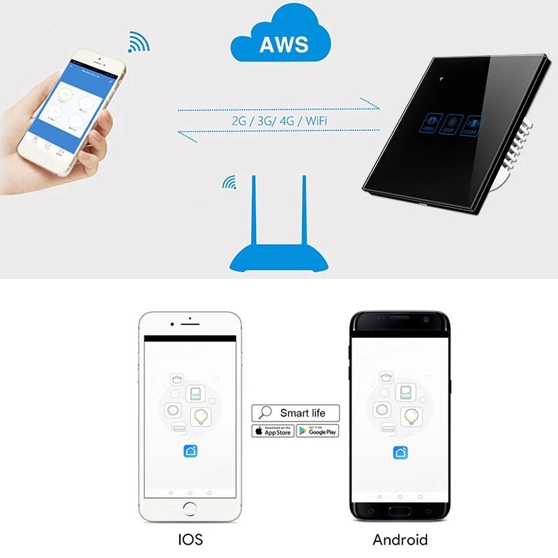 1 x Interrupteur mural tactile pour rideaux