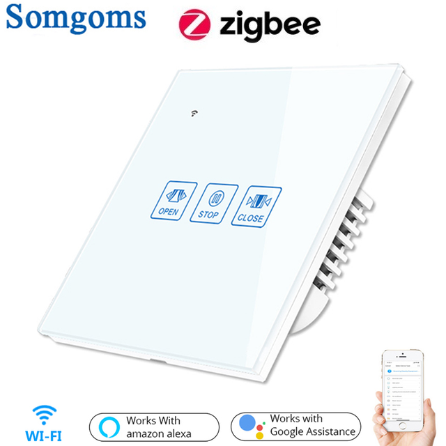 Somgoms Tuya ZB rideau tactile interrupteur mural panneau en cristal stores motorises electriques interrupteur intelligent telecommande fonctionne avec Alexa Google Home – Noir