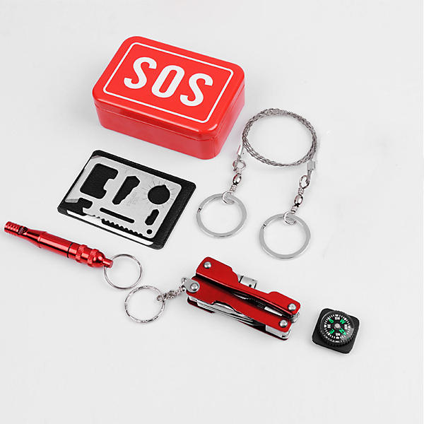 The frequency of earthquakes, typhoons, tsunamis, tornadoes, floods and other natural disasters is growing, at the time of natural disasters we have to rely on their own the first time to start self-help, mutual aid. This requires certain tools. We launched this self-help box, multi-function, easy to carry, outdoor essential goods. Package includeds :1* SOS box1x Multifunction LED flashlight1X Multifunction blade1x Cut saw1x Survival whistle1x Small compass