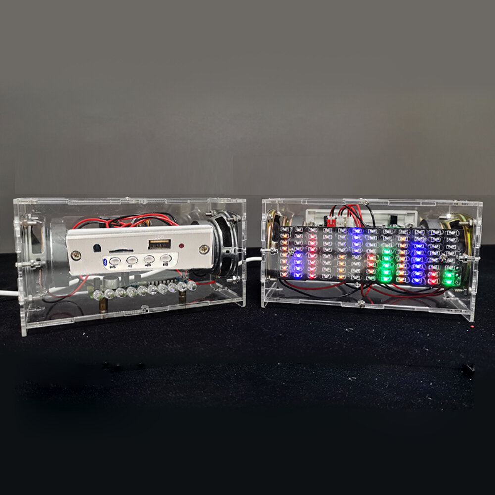 . Parametres: Taille: 13,5 * 6,5 * 7,5 cm Style: lampe fluide e commande vocale / version lampe e spectre patch Mode de contrele : telecommande Bluetooth/infrarouge Taille de la ligne principale: environ 1m Fonction: L'alimentation CC 3.7-5v joue automatiquement de la musique, Amplificateur de puissance stereo 3W + 3W Prise en charge du Bluetooth Prise en charge de la memoire de mise hors tension Prise en charge de l'insertion d'une carte memoire TF/USB pour lire de la musique Fonctionnement Bluetooth: Activez Bluetooth, appareil de numerisation directe, il n'est pas necessaire de changer de mode de carte de decodage, recherchez e DW-CT10-BT e, cliquez sur Connecter. Une fois le Bluetooth deconnecte, il basculera automatiquement sur TFCard ou Udisc. Cette version Bluetooth est 5.0, compatible avec tous les telephones mobiles et adaptateurs Bluetooth du marche, la distance de transmission en zone ouverte est d'environ 15 riz, elle peut se reconnecter automatiquement e l'appareil couple et lire de la musique automatiquement Emballage inclus: 1 x kit de bricolage haut-parleur luetooth Liste des kits de lampes fluides e commande vocale : Liste des panneaux lumineux de contrele du son numero parametres Numero de circuit imprime quantite 1 2M R2 1 2 470R R4, R5 2 3 20K R1, R3 2 4 S9014 T1 1 5 100UF C2 1 6 1UF C3 1 7 Micro 9*7 MK1 1 8 2P pin J1 1 9 Colore LED D1, D2, D3, D4, D5, D6, D7, D8, D9, 12 D10, D11 10 CD4017 enfichable U1 1 11 carte PCB 1 Liste de prise en charge de la carte de commande principale Bluetooth Nom quantite carte mere Bluetooth 1 40 haut-parleur magnetique 3w 2 Interrupteur e bascule 1 ceble d'alimentation 1 telecommande 1 Connecteur d'alimentation + ecrou 1 ligne 2p (PH2.0) 3 Ligne de connexion rouge et noire 2 Pilier en cuivre M3 * 8 2 Vis M3 * 6 4 Vis M3 * 10 12 ecrou M3 12 ecrou de vis M2 13 Un ensemble de coque de haut-parleur de contrele du son 1 Liste des kits de version de lampe e spectre de patch : Liste de prise en charge du spectre de correctifs e 12 canaux Nom quantite Condensateur electrolytique CMS en aluminium 1 0805 puce condensateur 104 1 0805 puce condensateur 30pf 3 CMS LED 100 STC12C5A60S2 (necessite le prochain programme) 1 Oscillateur e cristal Y1 1 carte PCB 1 Liste de prise en charge de la carte de commande principale Bluetooth Nom quantite carte mere Bluetooth 1 Haut-parleur 3w 4O double bobine magnetique 2 Interrupteur e bascule 1 ceble d'alimentation 1 telecommande 1 Connecteur d'alimentation + ecrou 1 ligne 2p (PH2.0) 3 Ligne de connexion rouge et noire 3 Vis M3 * 6 4 Vis M3 * 10 12 ecrou M3 12 ecrou de vis M2 13 Un ensemble de coque de haut-parleur e spectre 12 canaux 1