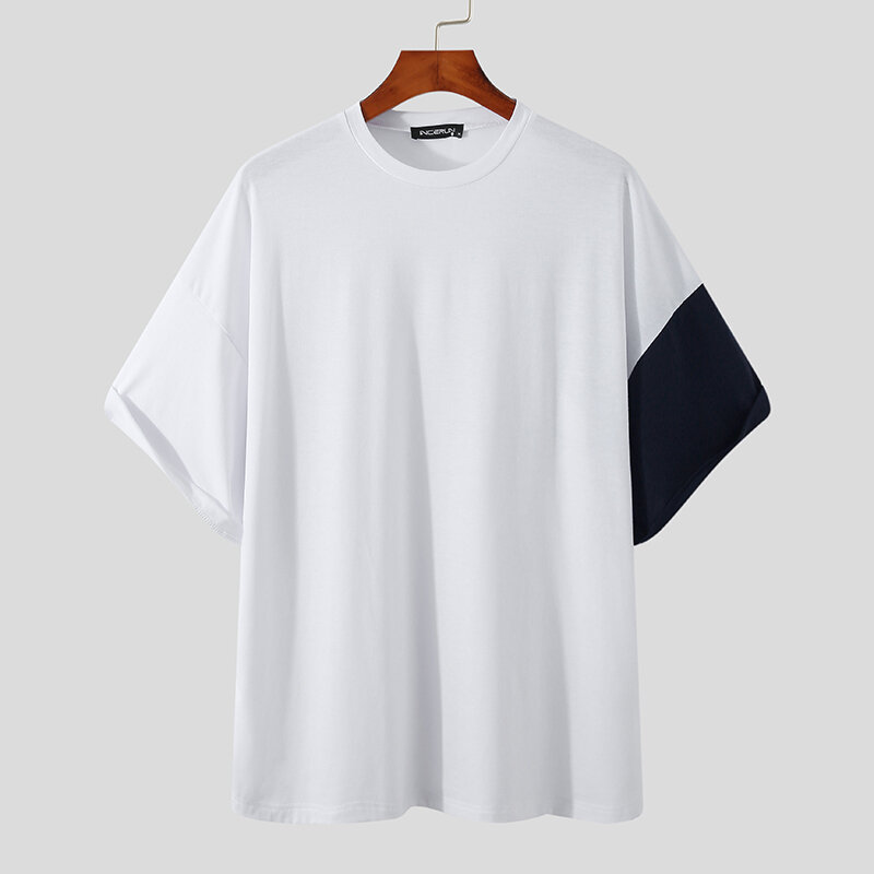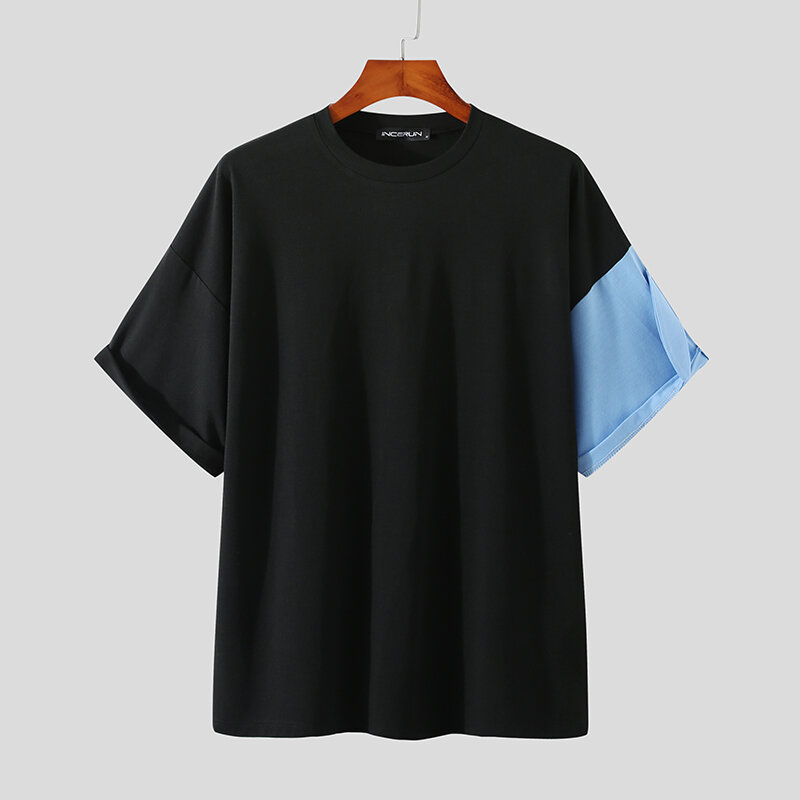 Splicing Round Neck Short-Sleeved Tops Whale Print Casual T-Shirt Breathable And Comfortable Men’s Tops – Black 2XL