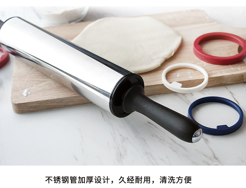 Stainless Steel Rolling Pin with Thickness Rings Large Duty Adjustable Roller