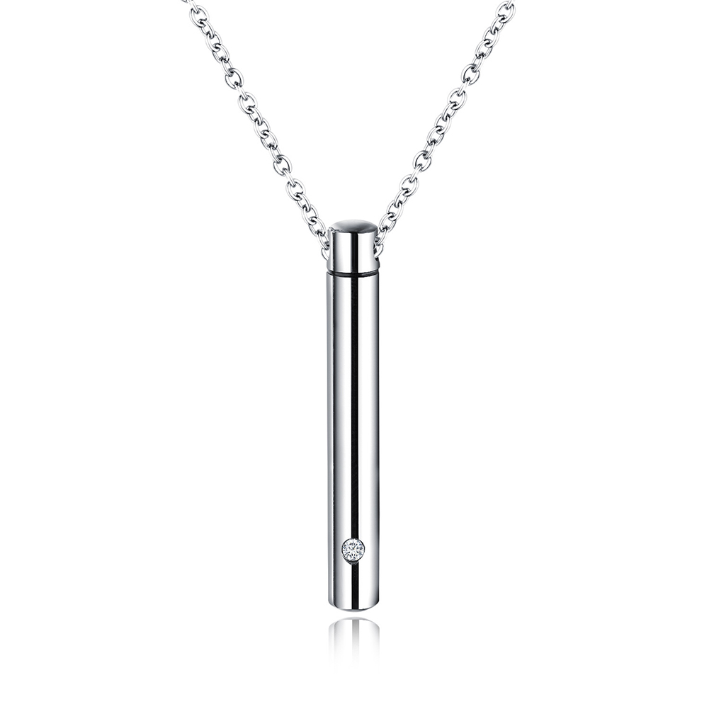 Steel Jewelry Cylinder Memorial Urn Pendant Cremation Necklace Ash Case Holder
