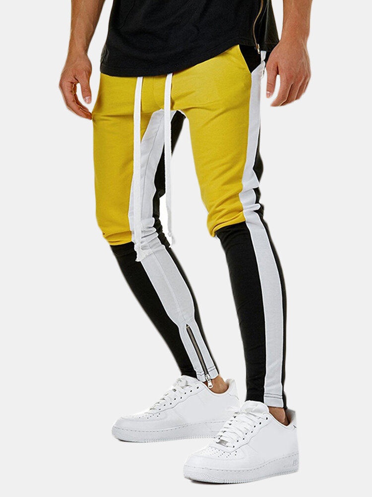 Stitching Color Casual Jogger Pants – 3XL Yellow