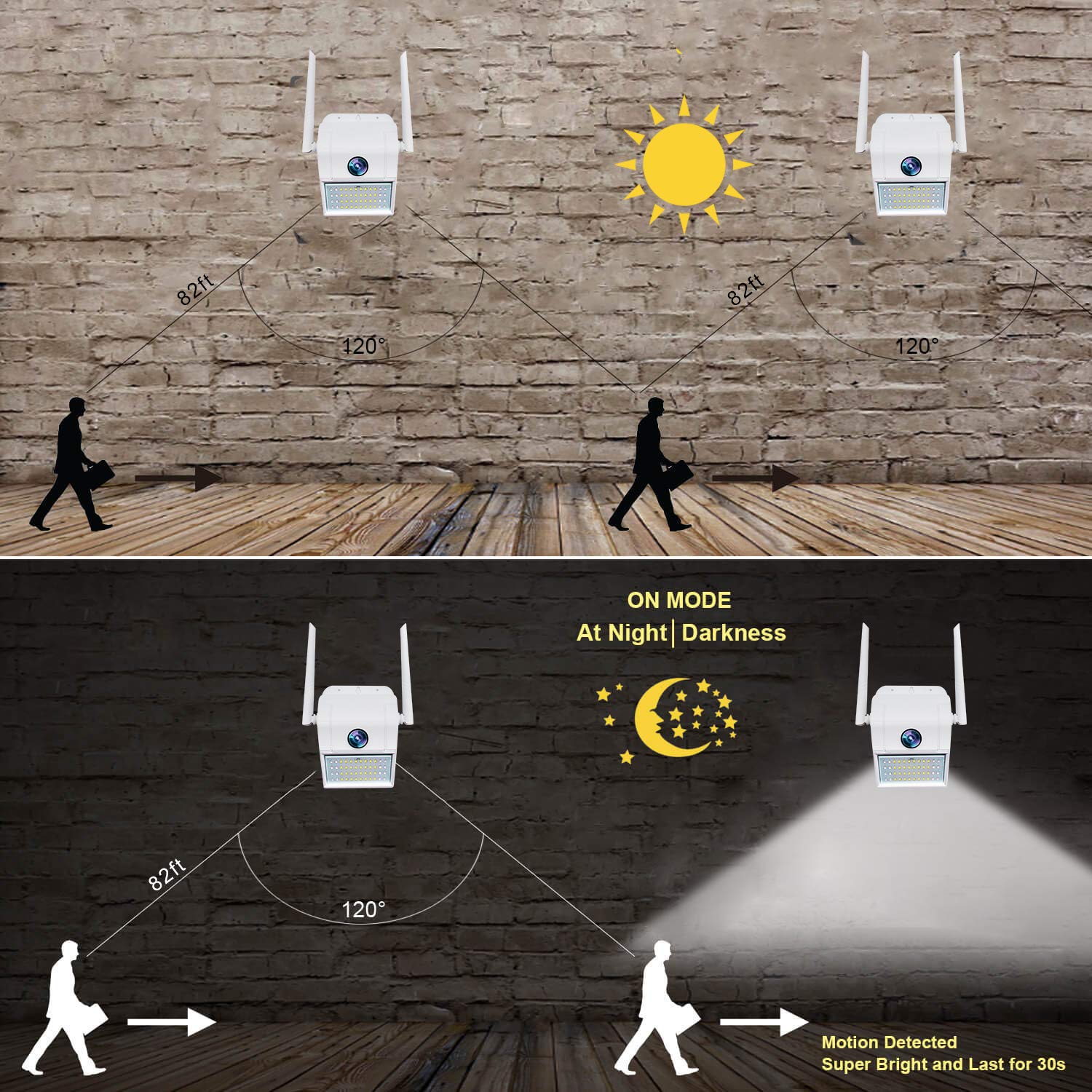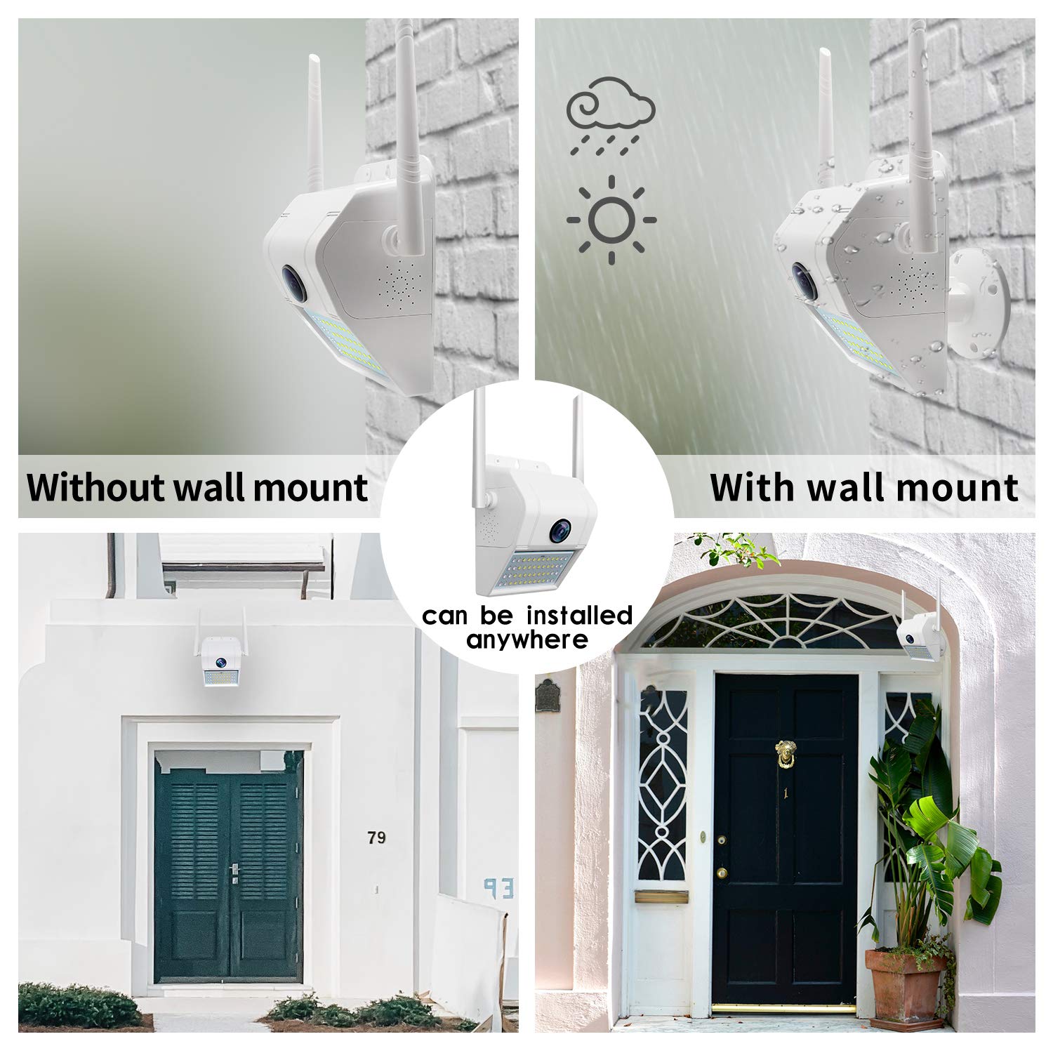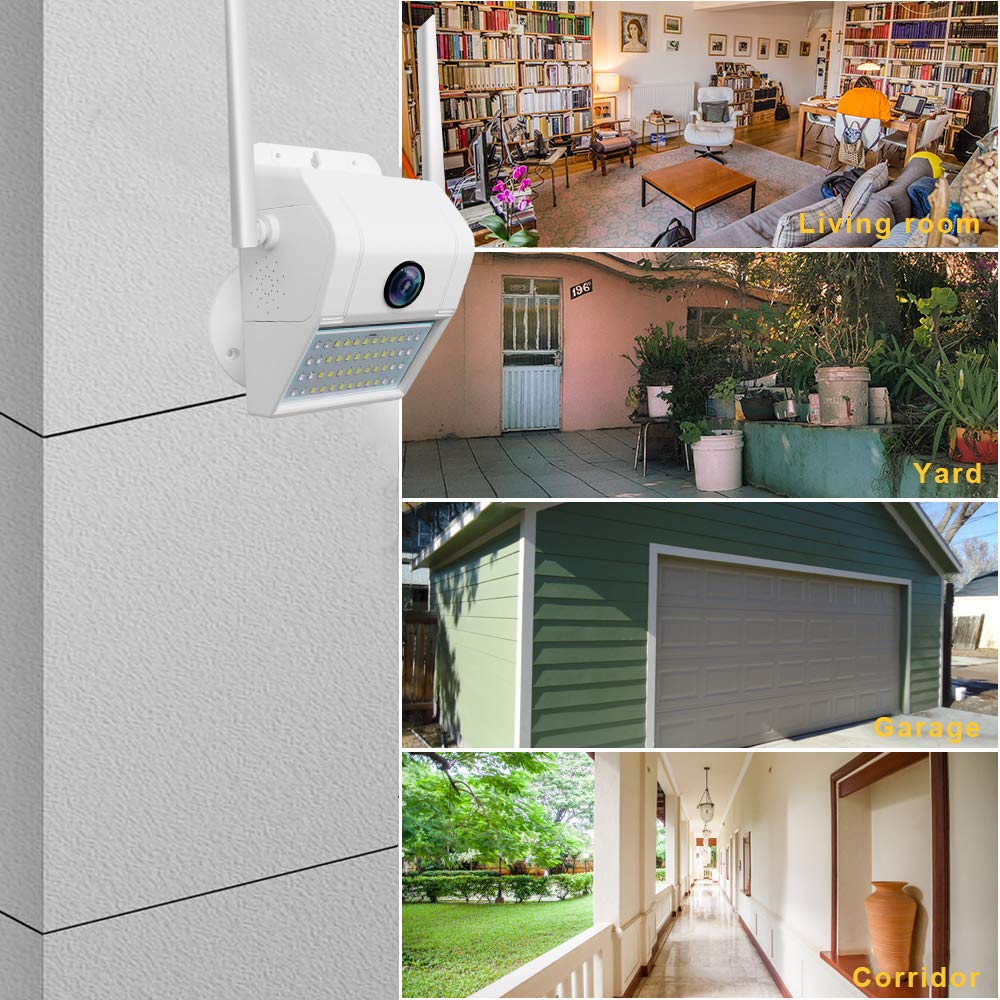 【Day And Night Surveillance】1080P FHD video. Feature 3.6mm fixed lens, 1080p HD, up to 82ft (25m) long-distance night vision range, this outdoor night vision security camera allows you to clearly see in darkness, keep your property protected day and night.【Two Way Audio】Custom fitted with a mic and speaker, this outside wireless cameras security offers convenient 2-way audio communication. It allows you to communicate with welcomed guests, and deterrent alarm can get rid of unwanted guests.