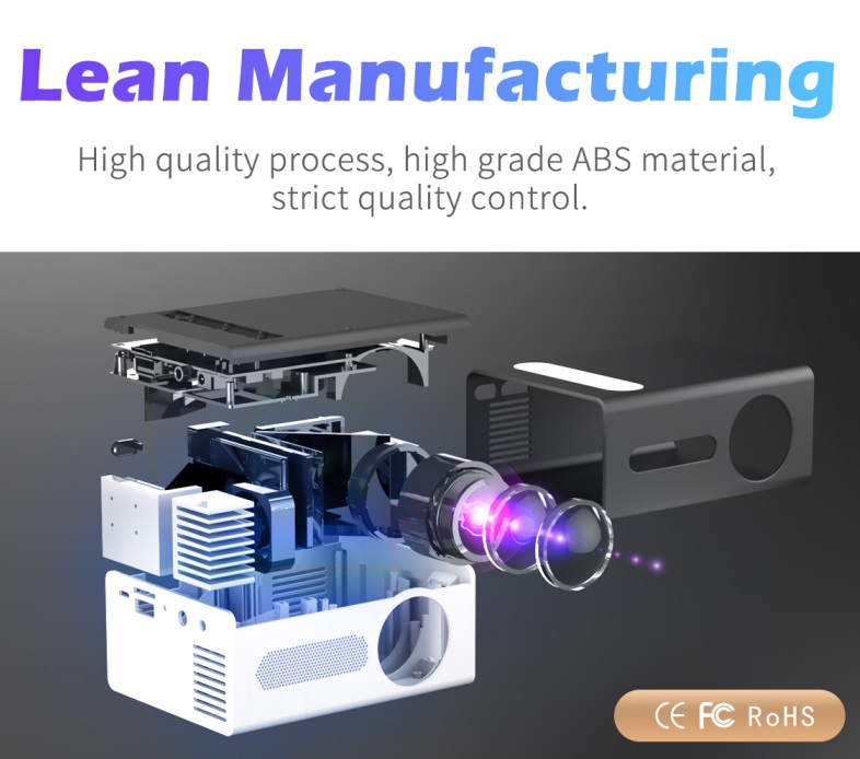 New DesignShort focus optical lens:Focus at a distance of 50CM. Add image edge distortion correction,significantly improve the image uniformity.New UI interface:New UI interface , support for multi-format videoaudio , pictures , e-book playback.Lean Manufacturing:quality process , high grade ABS materiastrict quality control.