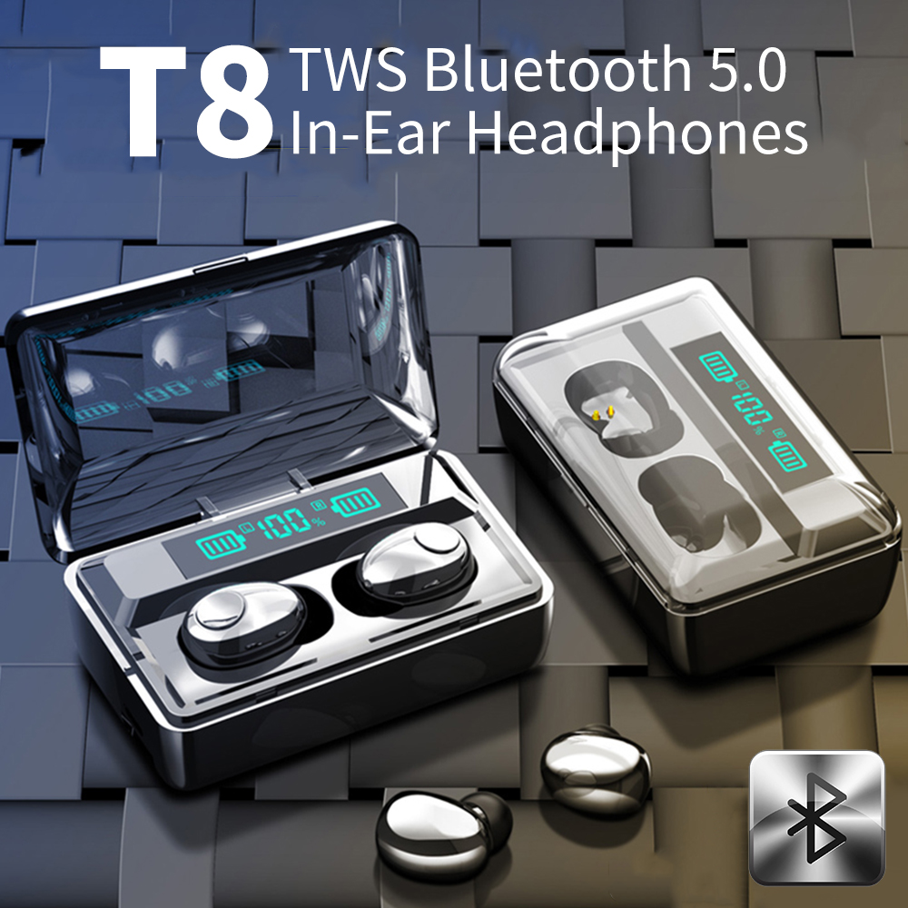 T8 TWS Earphone Wireless Bluetooth 5.0 Noise Cancelling Headphone Stereo Gaming Headsets LED Display 3500mAh Power Bank black