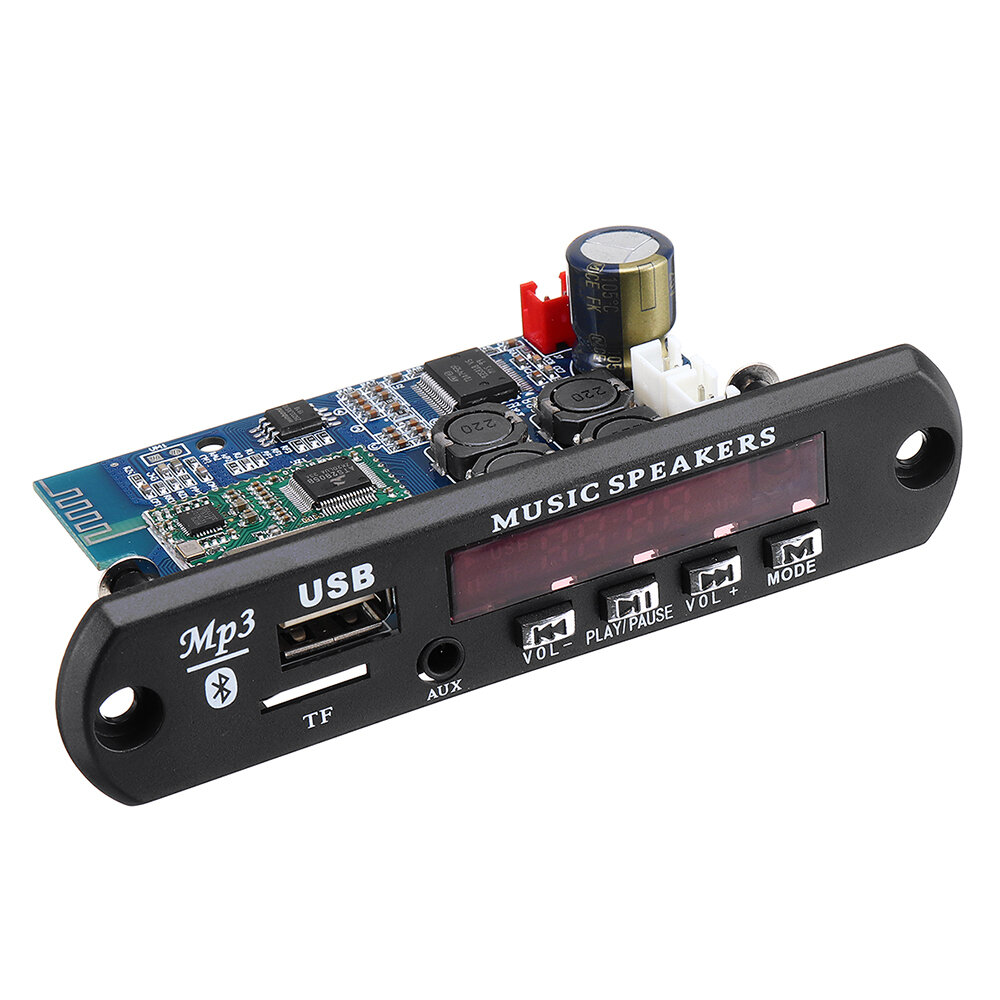 . Caracteristique: 1. Selection d'entree multicanal : Bluetooth/USB (disque U)/carte TF/AUX (entree de ligne) est livre avec un amplificateur 2x25W 2. La carte de decodeur est livree avec un amplificateur de puissance, ce produit est un ceblage simple, pas de bruit 3. Audio : prend en charge plusieurs formats audio, y compris le format sans perte APE/WAV 4. Sortie stereo haute puissance : 25 W + 25 W, la puce de l'amplificateur est le TDA7492P de ST 5. Alimentation CC large e alimentation unique: DC12V-24V, recommandation actuelle 2A 6. Contrainte des materiaux, puce smt de precision, condensateurs de couplage de la fievre ELNA, entree audio 3,5 plaquee or 7. L'utilisation d'une telecommande en silicone de haute qualite, se sentir mieux, des touches plus sensibles, une telecommande e bouton bombe non ordinaire peut se comparer Taille : 76,5 x 57 mm Instructions de ceblage: 1. Support blanc 2P: VCC +12V DC positif, alimentation GND negative; 2. Support blanc 2P : ROUT+ est connecte au positif du haut-parleur droit, ROUT- est connecte au negatif du haut-parleur droit ; LOUT+ est connecte au positif du haut-parleur gauche, LOUT- est connecte au negatif du haut-parleur gauche. Description de la fonction du panneau : 1. "PREV / VOL-": appuyez longuement sur le volume moins; appui court pour la piste precedente ; 2. "PLAY/PA0SE": appuyez brievement sur play/pa0se; 3. "MODE": cliquez sur un mode de lecture, le disque ou la carte U non insere sautera automatiquement le disque ou la carte U. Emballage inclus: 1 x 25W + 25W carte amplificateur bluetooth carte decodeur MP3 1 x telecommande 3 x ceble