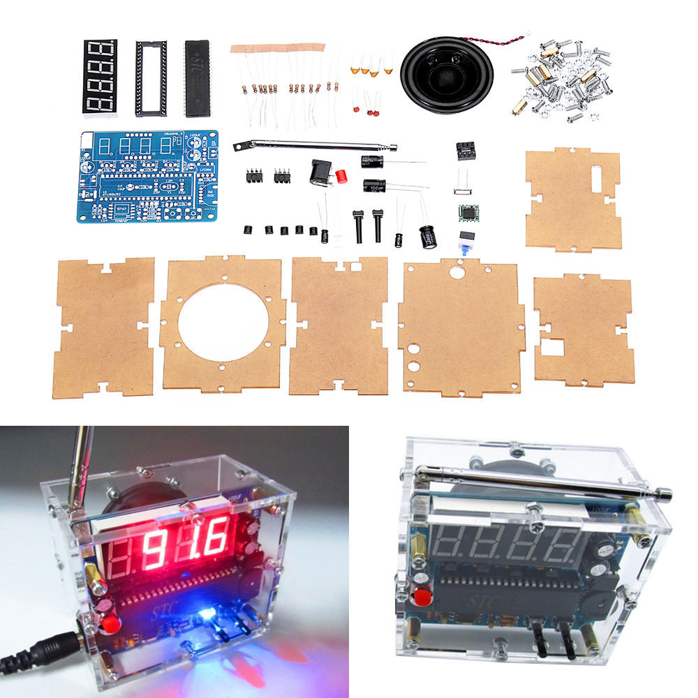 . Fonctionnalite: Taille de la planche: 7,7 x 6,1 cm Tension de fonctionnement: DC 4.5V-5.5V Alimentation CC, e l'interieur positif exterieur negatif, ne pas connecter l'inverse Gamme FM: 87MHZ-108MHZ etape FM: cliquez une fois sur 0,1 MHZ, appuyez longuement sur le bouton FM pour ajouter et soustraire en continu Fonction: fonction de frequence d'affichage numerique, fonction de memoire de mise hors tension, fonction d'economie d'energie Avec fonction de memoire de mise hors tension Introduisez la fonction d'economie d'energie: apres chaque mise sous tension ou appuyez sur la touche FM, le tube numerique affiche la frequence pendant 5 secondes. Apres 5 secondes, l'affichage numerique du tube s'eteint automatiquement. Il y a deux raisons e cette conception. 1 est une economie d'energie et 2 est le tube numerique. Son derangeant lorsqu'il est affiche, eteignant le moniteur de tube numerique, le son est plus beau Haut-parleur: 2W 8ohm Le forfait comprend: 1 x carte PCB 1 x 262 petite antenne 1 tube numerique e cathode commune e 3 chiffres de 0,56 pouce Condensateur electrolytique 3 x 100UF 50V Condensateurs electrolytiques 2 x 10UF 25V 3 condensateurs ceramiques 22P 4 x 104 condensateurs monolithiques 1 x 8 * 8 interrupteur autobloquant 1 capuchon d'interrupteur autobloquant haut de 7 mm 1 prise DC005 1 x resistance 4,7 ohm Resistance 11 x 10K 1 x resistance 220K 5 x 9012 triode 1 x cristal 13,56 M 1 module radio TEA5767 Bouton 2 x 6 * 6 * 20 1 x 2 * 5 * 7 LED 1 potentiometre e cadran 50K 1 x prise IC 8P 1 x prise IC 40P 2 puces LM386 1 x STC89C52 (programme brele) 1 x plaque acrylique (ensemble) 25 x M3 * 8 vis 25 x M3 ecrous 5 x 10 mm Double poteau en cuivre