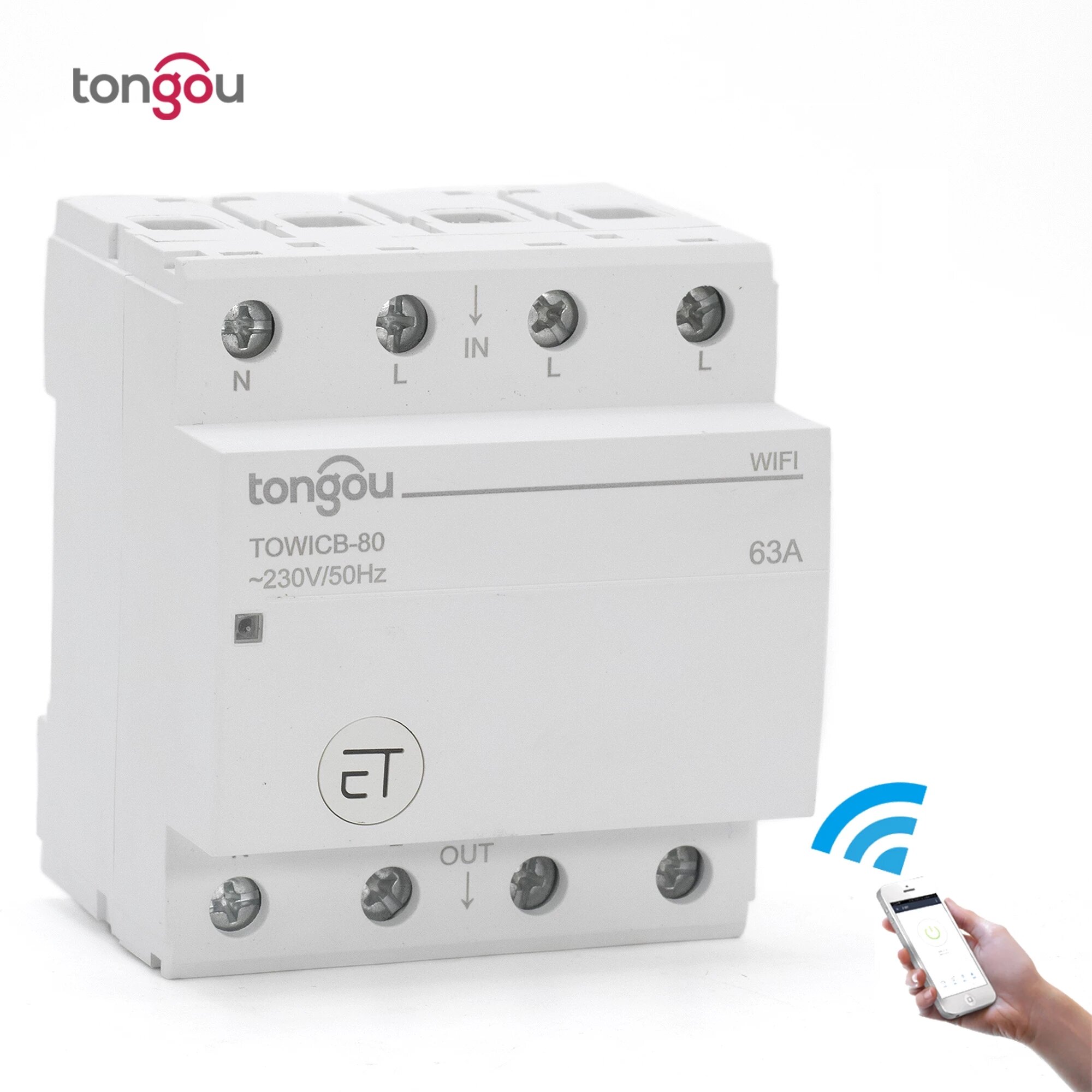 Telecommande de disjoncteur Tongou TOWICB-80 4P WiFi par eWeLink APP commande vocale avec Amazon Alexa Google Home interrupteur principal de Rail Din 72mm – 63A