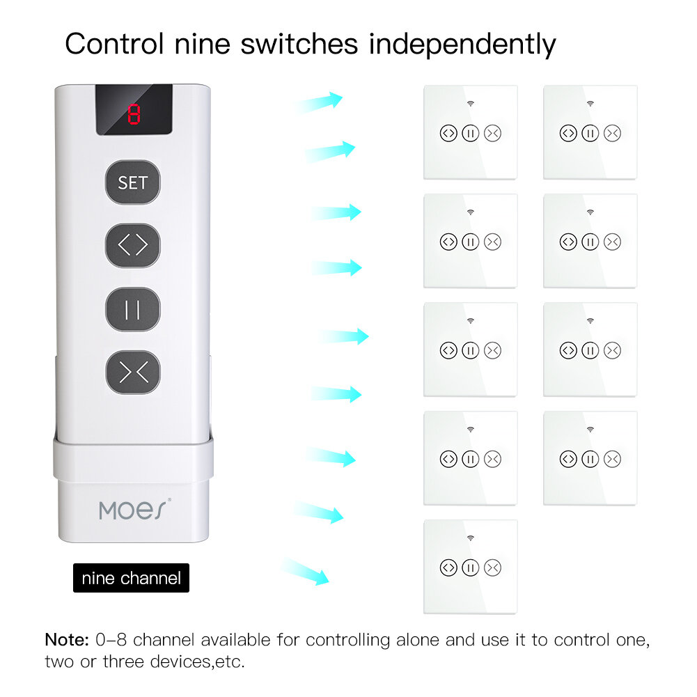 3. Encodage 1527 requis pour la telecommande. Aucun autre code disponible pour ce systeme de commande de rideau, nous vous recommandons vivement d'utiliser cette telecommande speciale pour contreler notre interrupteur de rideau ou module de commutation Moes. N'utilisez pas cette telecommande pour contreler d'autres appareils non pertinents, seuls notre interrupteur de rideau Moes et notre module de commutation sont disponibles.