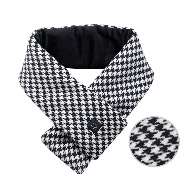 TENGOO Electric Heating Scarf 3 Gears Heating 4 Modes Massage Ajustable Winter Warm USB Rechargeable Neckerchief Plush Collar – Black and White