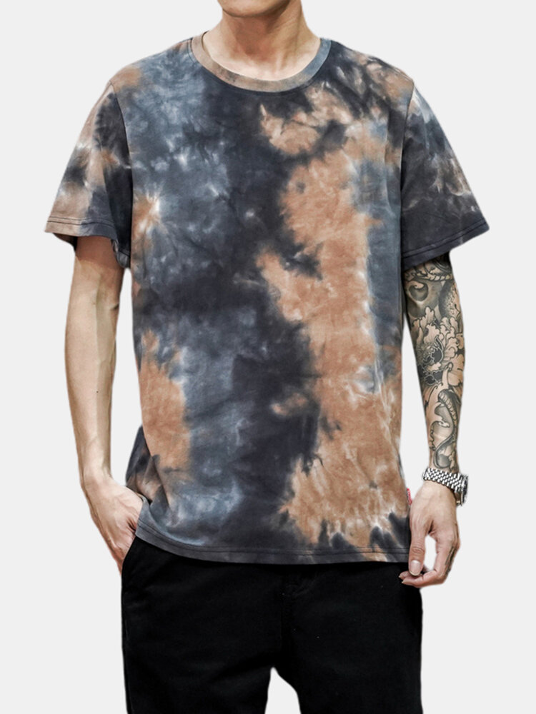Tie-Dye Cotton Mens Short Sleeve Breathable T-Shirts – Purple M