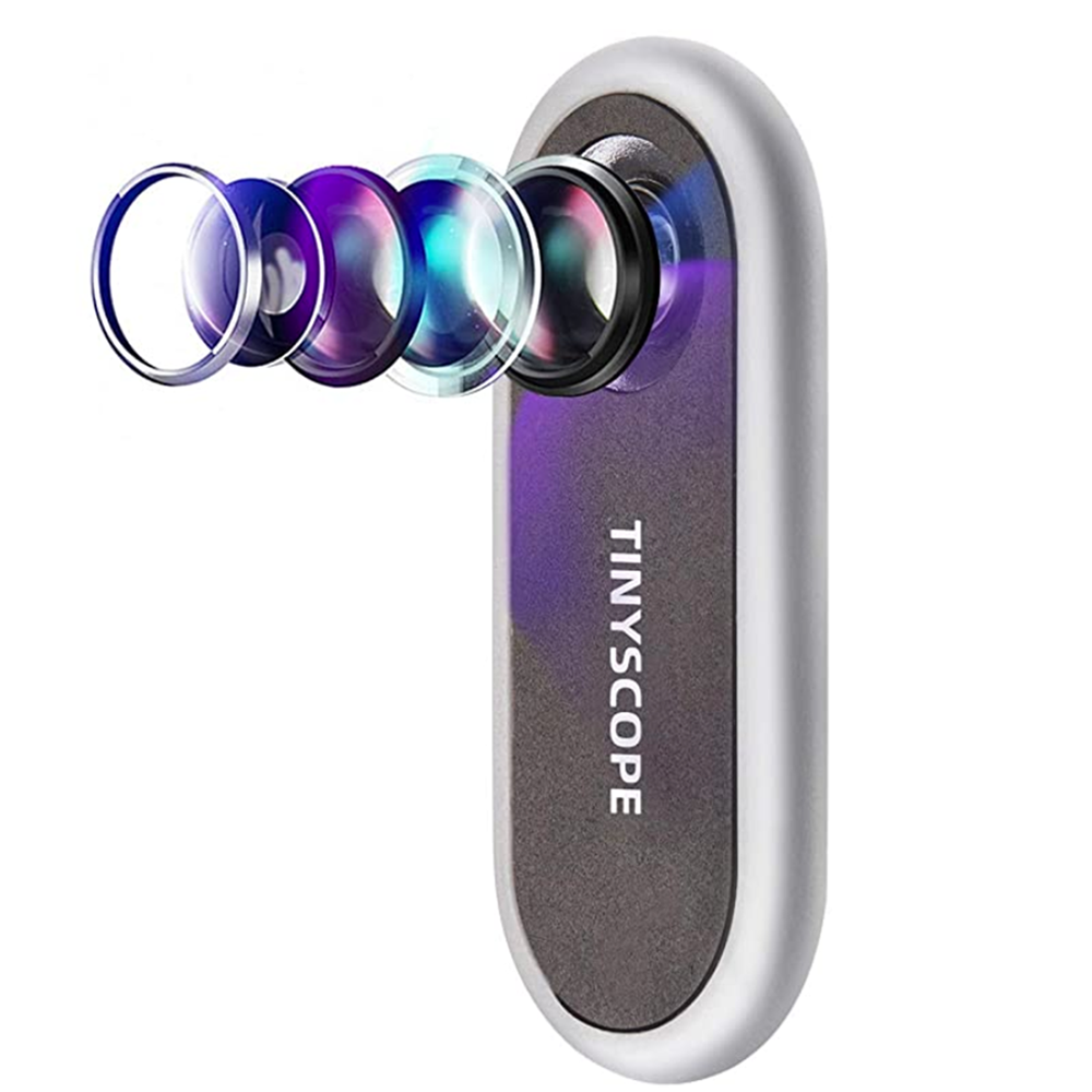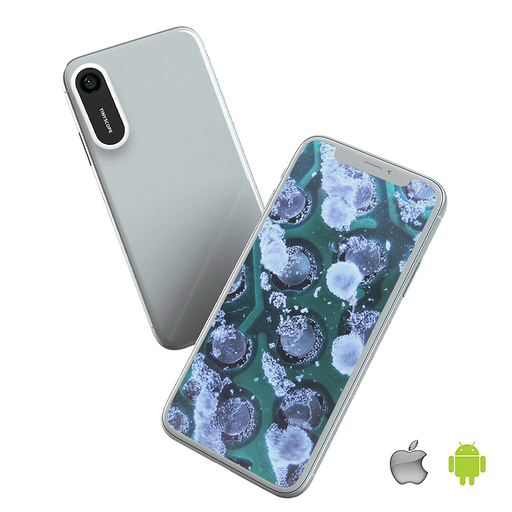 . Caracteristique: PETIT, MAIS PUISSANT : le microscope mobile TINYSCOPE permet e votre telephone portable de grossir jusqu'e 400X. Cet accessoire super leger transforme votre telephone en un microscope professionnel LAB ON THE GO: TINYSCOPE n'a pas besoin de piles, de cordons d'alimentation ou de cebles USB, un microscope plus ser pour les etudiants et les enfants, facile e utiliser et respectueux de l'environnement. Le diffuseur de lumiere utilise le flash de votre telephone pour fournir un eclairage clair et uniforme pour l'observation des objets. Les details des objets sont affiches en haute definition en utilisant le plein ecran de votre telephone APPLICATION LARGE : TINYSCOPE peut etre utilise partout ! Utilisez-le pour le travail en laboratoire, les applications STEM, l'evaluation de bijoux, le diagnostic de sante, l'investigation artistique, l'exploration en plein air, etc. Imaginez et profitez de la polyvalence d'un veritable microscope lorsqu'il atteint la taille de votre pouce FACILE e PARTAGER : Explorez le micro-monde et partagez vos decouvertes avec vos amis en un clic. Prenez des photos et des videos avec l'application de tout ce que vous voyez. Partagez-les avec vos amis sur Facebook, Instagram et Youtube L'APPLICATION : Recherchez et telechargez e TINYSCOPE e sur Google Play ou App Store Emballage inclus: 1 x lentille de microscope TINYSCOPE (les autres produits ne sont pas inclus) 2 x lames biologiques