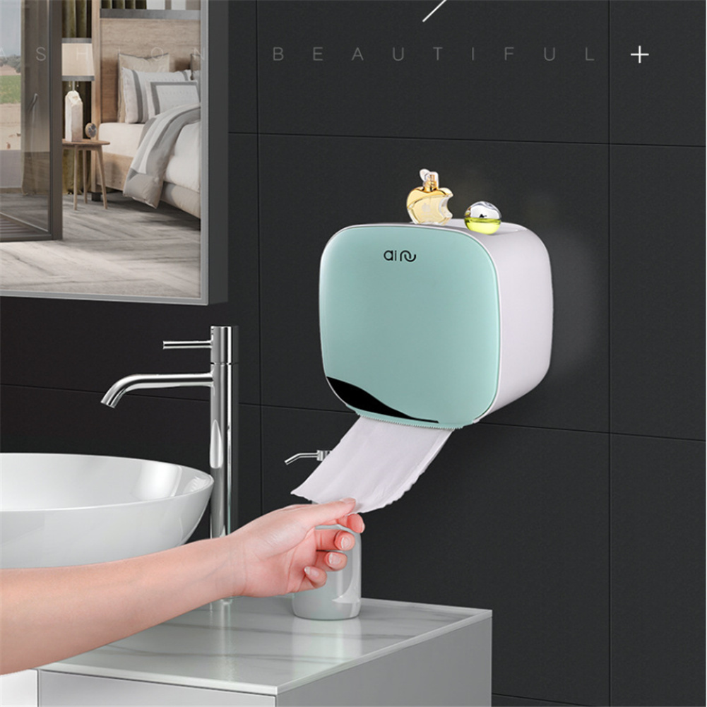 Toilet Tissue Box Non-perforated Roll Paper Tube Waterproof Holder Storage Bathroom Accessories blue