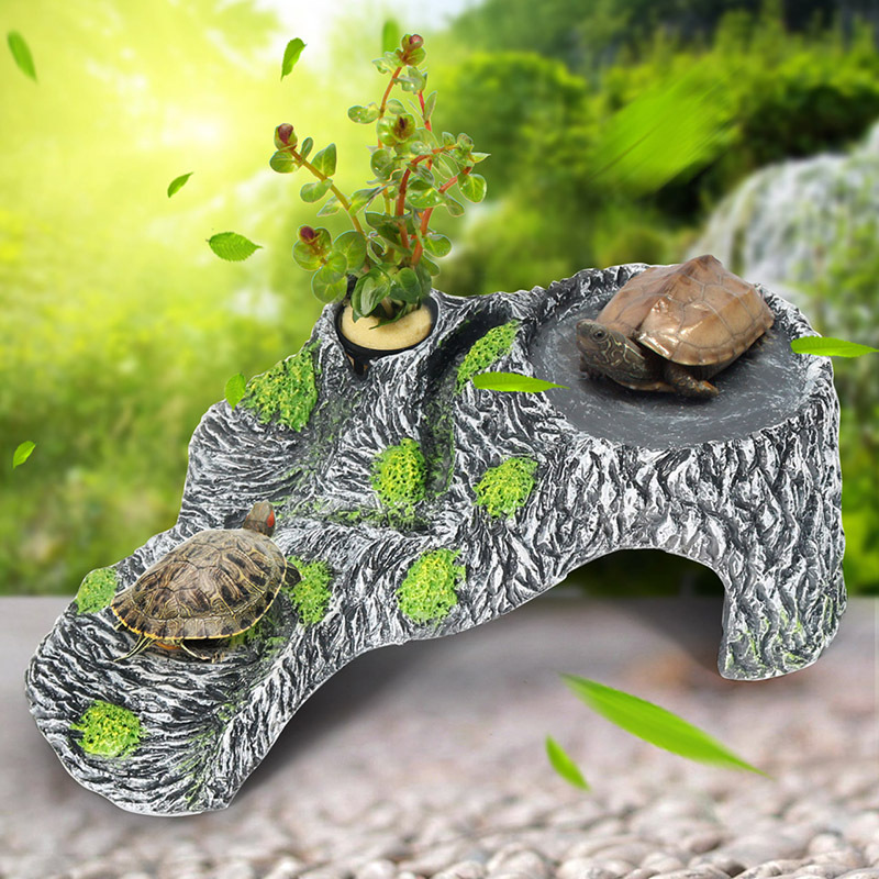 Tortoise Drying Climbing Platform Pet Reptile Hide Cave for Tank Decoration M