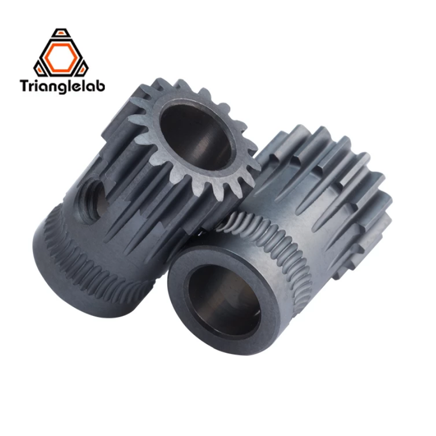Remplace par des engrenages avec une adherence plus forte, sous une forte morsure, il n'endommagera pas la structure de la paroi exterieure du filament comme les engrenages inferieurs. Nous essayons de trouver la force de morsure parfaite. Les engrenages ont une duree de vie plus longue. Vous pouvez presque toujours utiliser votre imprimante jusqu'e ce qu'elle soit mise au rebut.