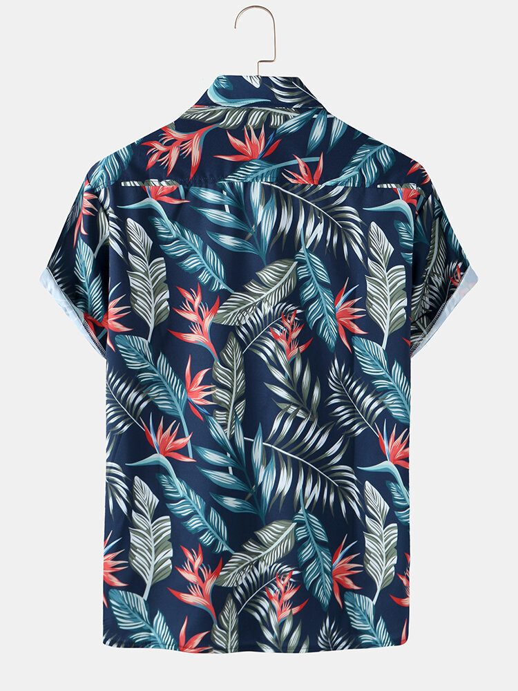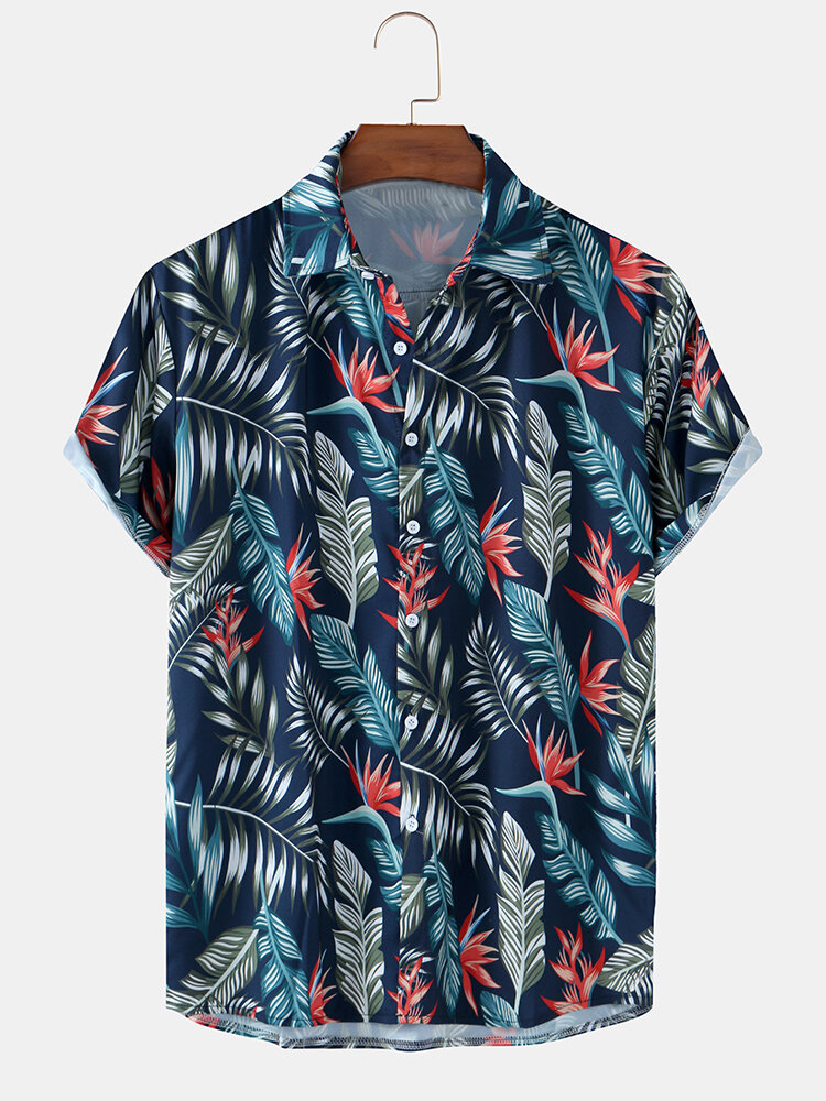 Description:Fit Type:Regular FitMaterial:PolyesterNeckline:LapelPattern Type:Tropical,PlantsScene:Leisure,Home,Beach,CasualSeason:SummerSize:XXL,L,XL,MSleeve:Short SleeveStyle:Casual,Hawaii Style