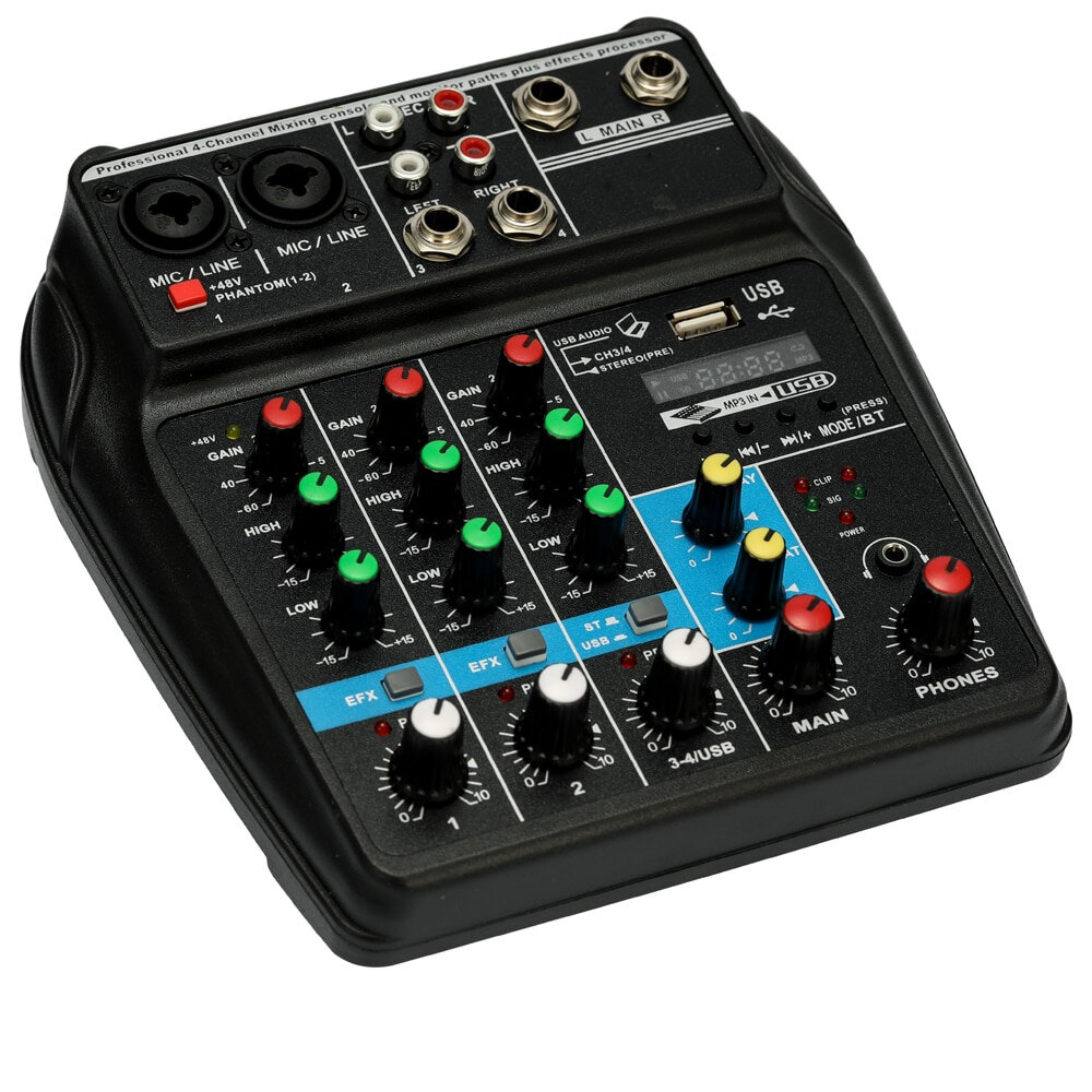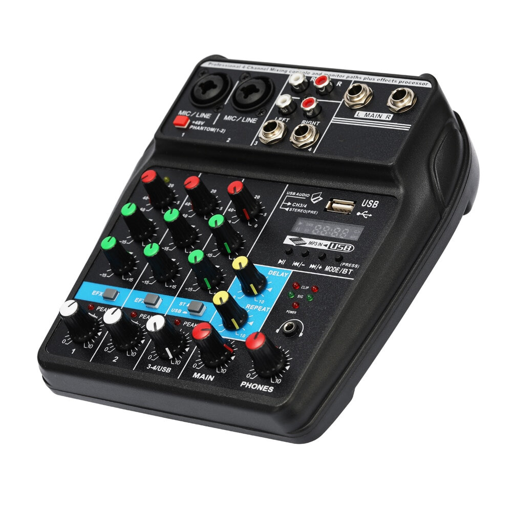 TU04 Audio Mixer Professional 4 Channel Mixing Consote bluetooth Power Monitor Paths Plus Effectd Processor EU Plug with USB – EU Plug