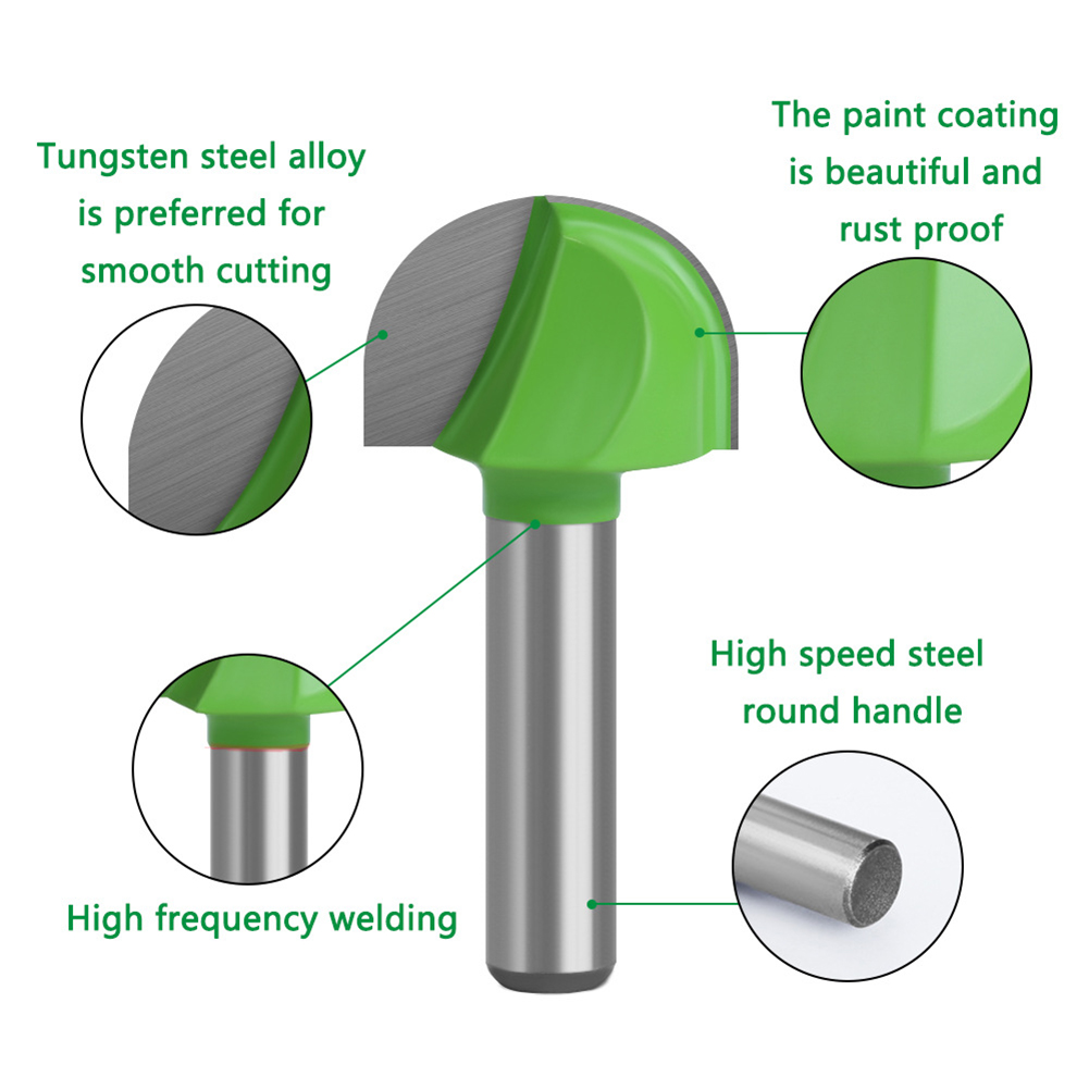 Tungsten Steel Alloy 8mm Shank Diameter Woodworking Semicircle Router Bit Tool 8X20