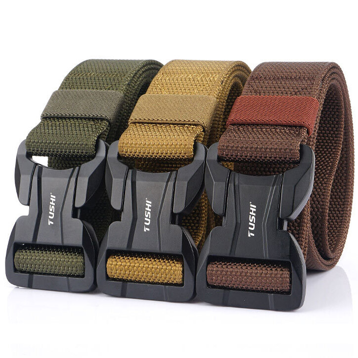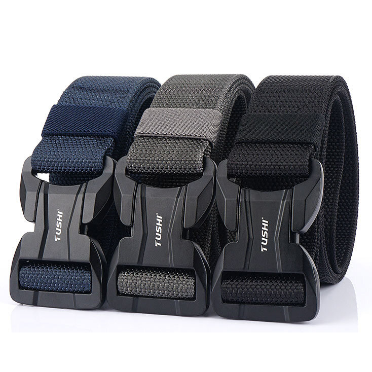 TUSHI 125CM Magnetic Buckle Leisure Canvas Breathable Waist Belt Quick Unlock Belt Men’s Elastic Tactical Belt – Black