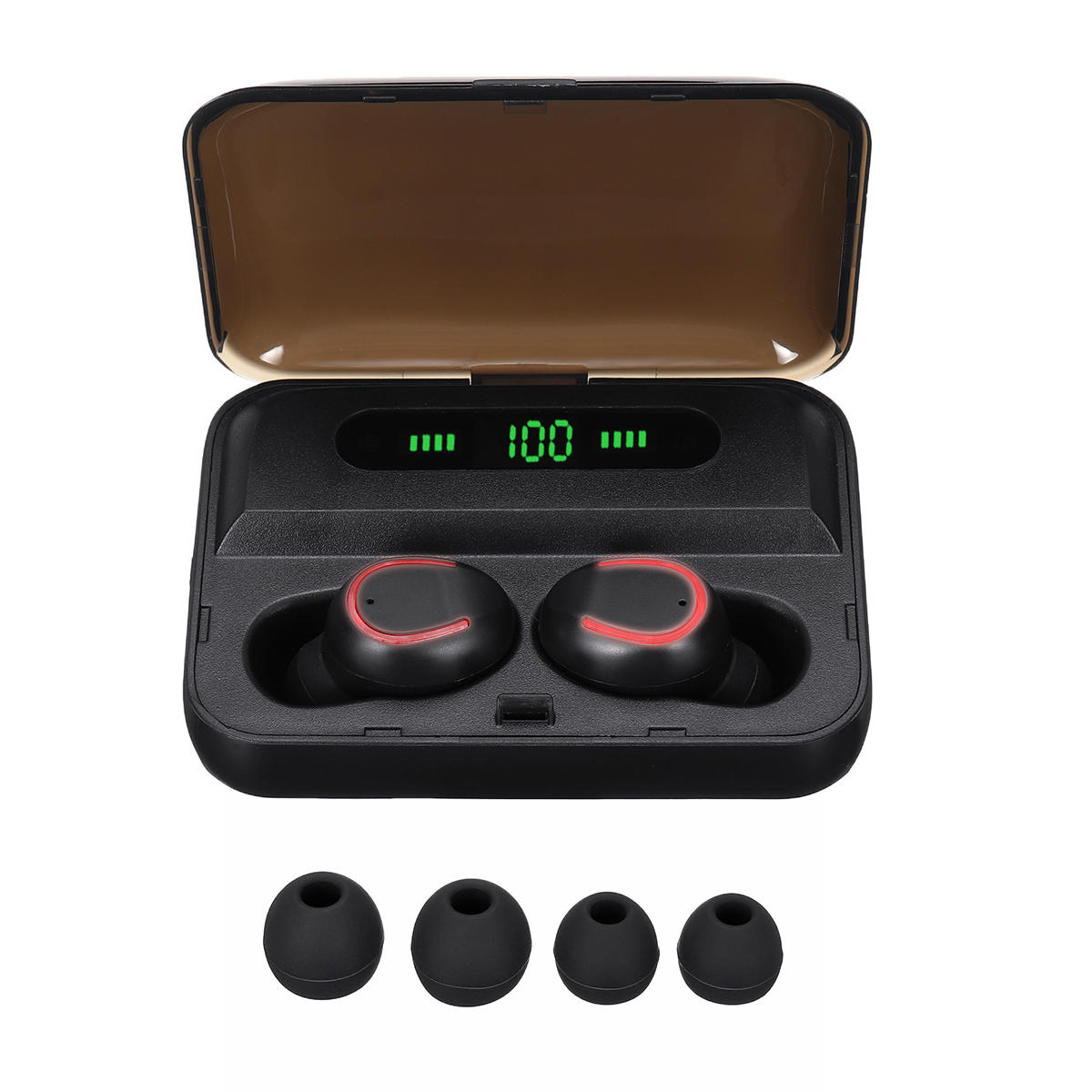 . Le forfait comprend: 2 x ecouteurs bluetooth 6 x cache-oreilles 1 x cas de charge 1 x ceble de charge USB 1 x manuel d'utilisation Specification: Nom du produit: ecouteurs Bluetooth 5.0 Modele: D31107 Couleur: noir, blanc Materiel: ABS (acrylonitrile butadiene styrene) Tension: DC 5V 1A Temps de musique: environ 4 heures Temps de chargement de la boete de chargement: environ 2 heures Capacite de la boete de chargement: 1300mAh etanche: oui Distance effective: 20m / 66ft Taille des ecouteurs: 15 * 22 * 20mm / 0.6 * 0.9 * 0.8inch Taille de la boete de charge: 80 * 55 * 26mm / 3.1 * 2.2 * 1.0inch Fonctionnalites: 1. Double affichage numerique, affichant visuellement la puissance en temps reel 2. Avec TWS cas de charge de grande capacite, mettre et charger immediatement 3. La boete de chargement peut egalement etre utilisee comme banque d'alimentation, chargeant le telephone mobile 4. Connexion par commutateur automatique, pression continue pour changer les chansons de haut en bas, ecouter le telephone dans les deux oreilles 5. Demarrez la connexion automatique avec le dernier telephone couple, plus pratique 6. Compatibilite intelligente, supporte tous les telephones mobiles Bluetooth, tablettes, ordinateurs portables, etc. 7. Son stereo surround 360 e, son d'origine hautement restaure 8. bluetooth 5.0, connexion stable 9. Prise en charge du systeme IOS / ANDROID / WINDOWS
